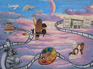 Takie piękne prace uczniów naszej szkoły wezmą udział w Ogólnopolskim Przeglądzie Plastycznym "Niebo do wzięcia" Fundacji Przytulny Domek.