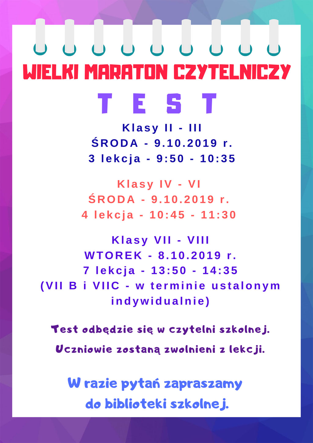 Test w ramach Wielkiego Maratonu Czytelniczego