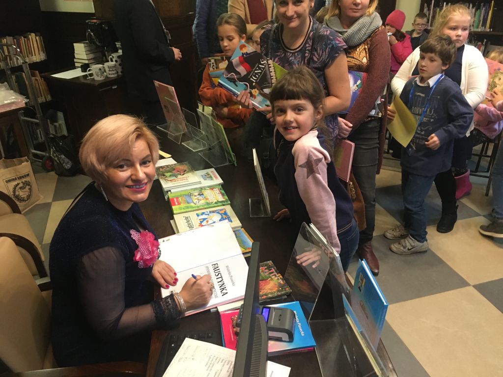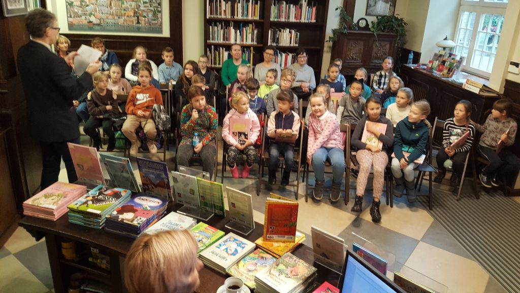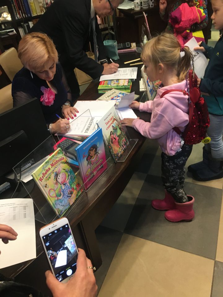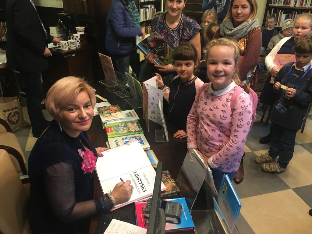 szkolnej wybrały się na wycieczkę do Miejskiej Biblioteki Publicznej w Gdańsku na spotkanie z pisarką, autorką „Faustynki" panią Violettą Piasecką.