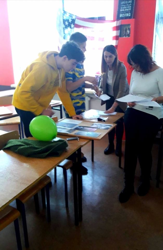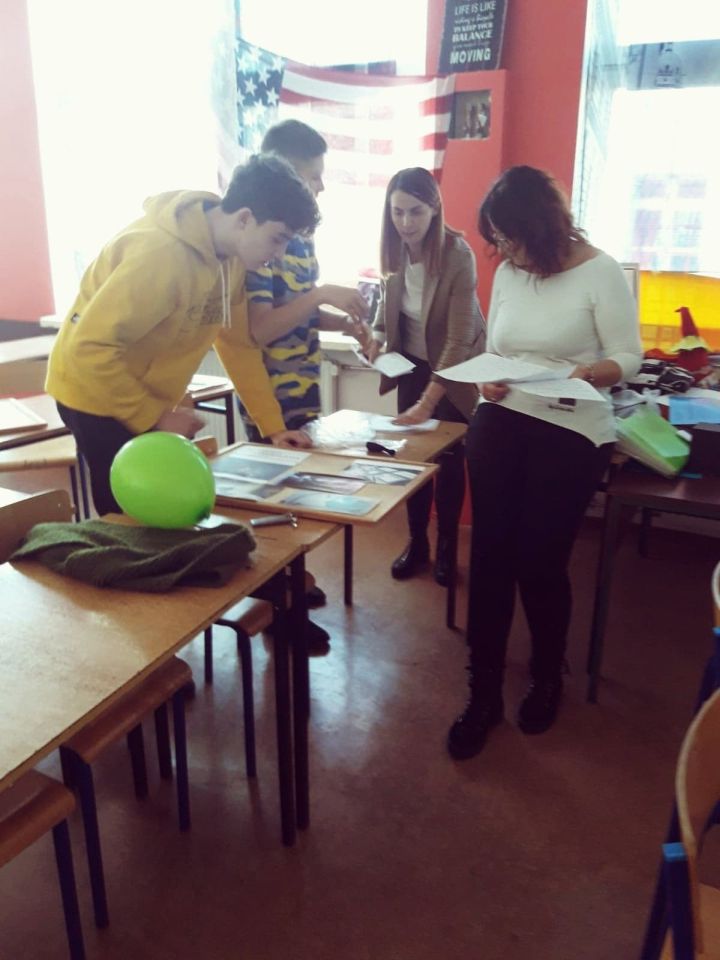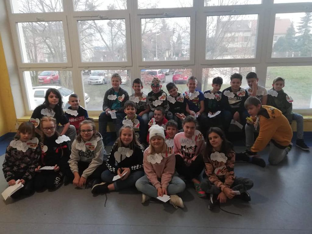 Po krótkim przedstawieniu się nasi uczniowie przekazali wiadomości o naszym kraju pokazując jego granice, stolicę, główne miasta. Wymienili, opisali i