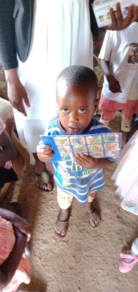 Dziś po mszy Pani Gladys Mirembe rozdała dzieciom starszym przybory szkolne i młodszym pluszaki. Były to dary z drugiej paczki.