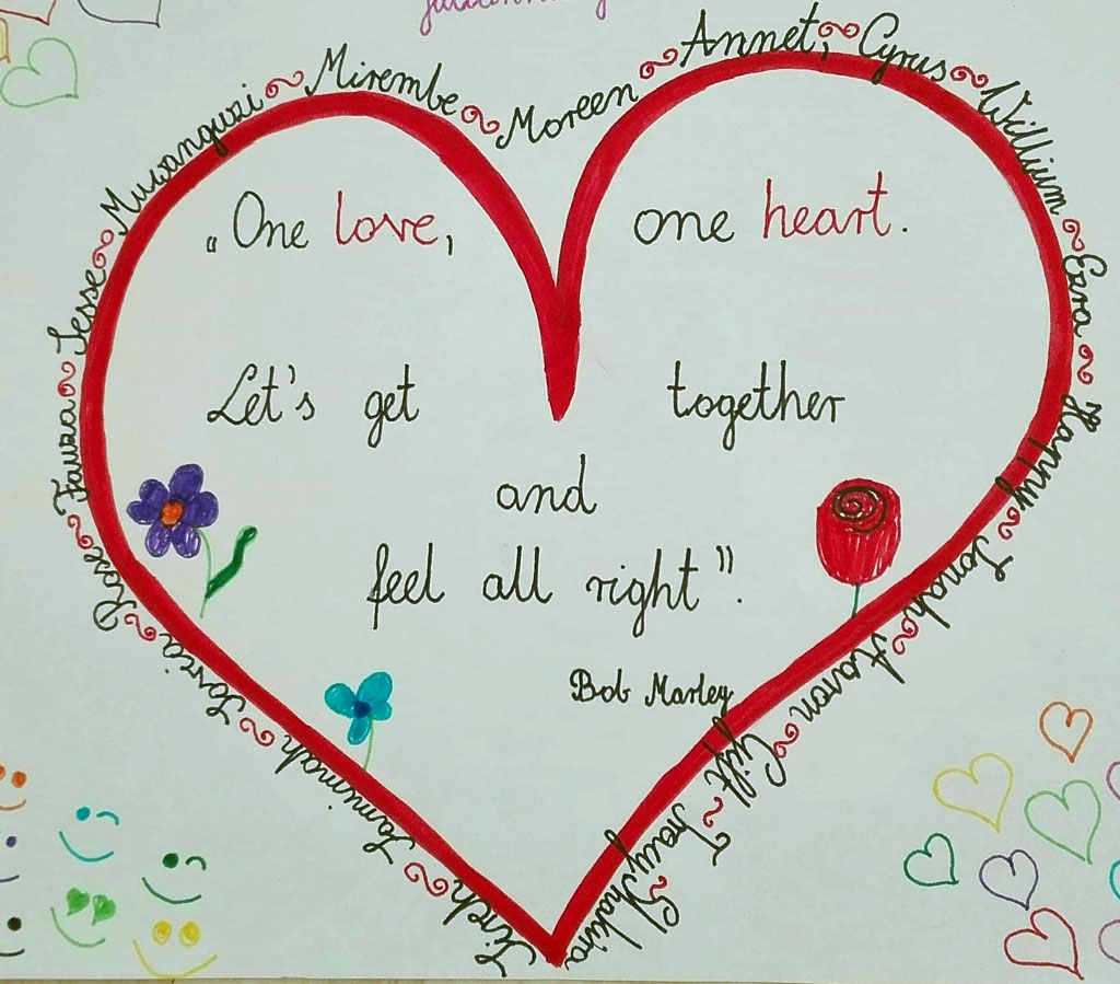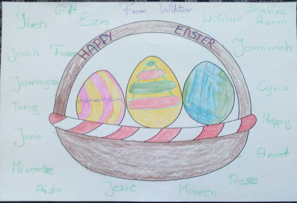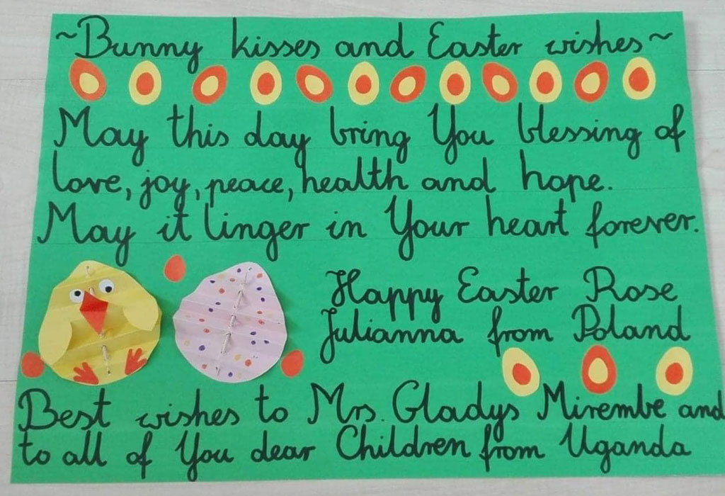 Poprosiłam klasę 4A i 5 D o napisanie pozdrowień dla dzieci z Ugandy. Nie możemy mieć lekcji online z nimi, nie możemy wysłać