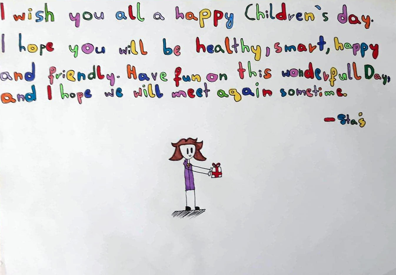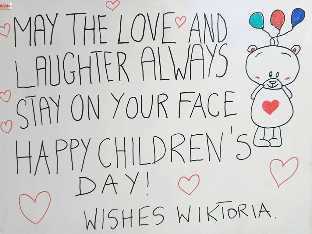 pozdrowienia, pochodzą z ich serc, młodych serc. Dzieci doświadczają teraz wiele strachu. Boją się o siebie, o swych bliskich. Dziękujemy