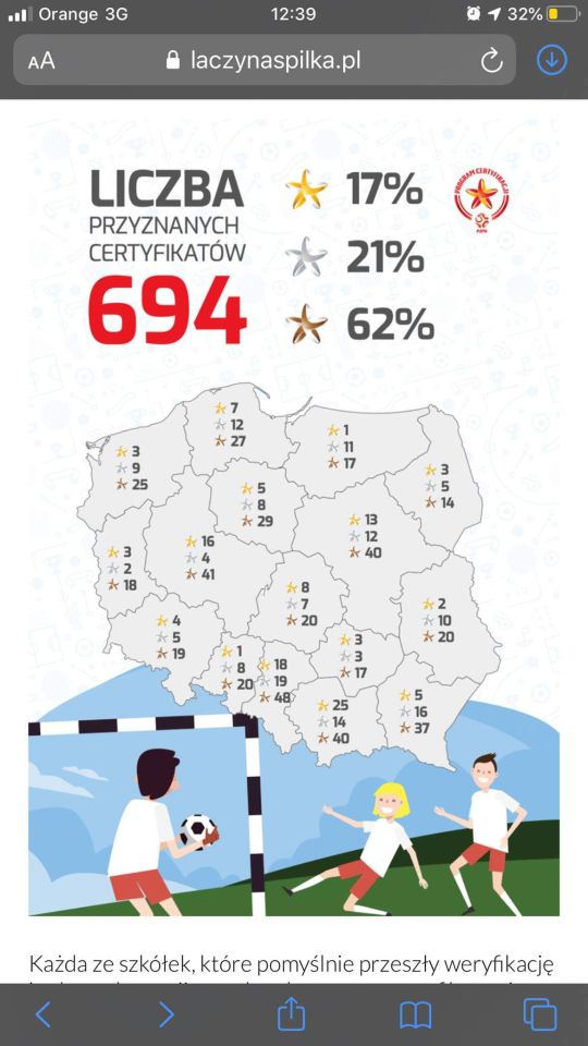 Znaleźliśmy się w gronie 12 klubów w województwie pomorskim ( srebrne gwiazdki) i 694 w Polsce (łącznie wszystkie certyfikowane podmioty).