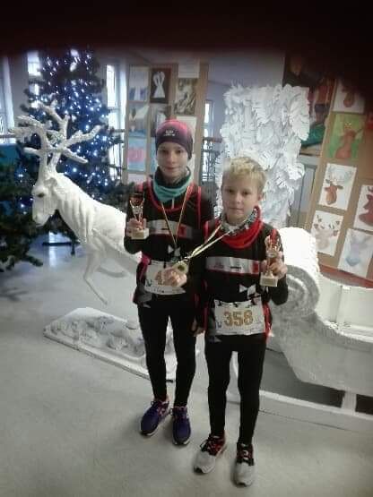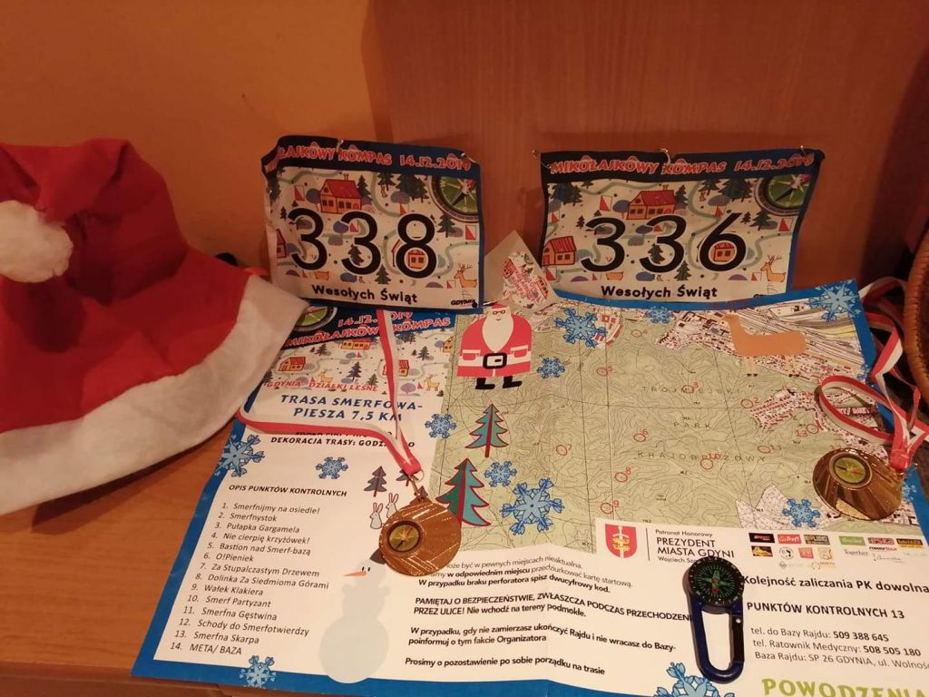 Olek i Kuba z klasy 1c wzięli udział w imprezie sportowej na orientację "Mikołajkowy Kompas" 2019 w Gdyni 14.12.19 - sobota trasa Smerfowa 7,5km.