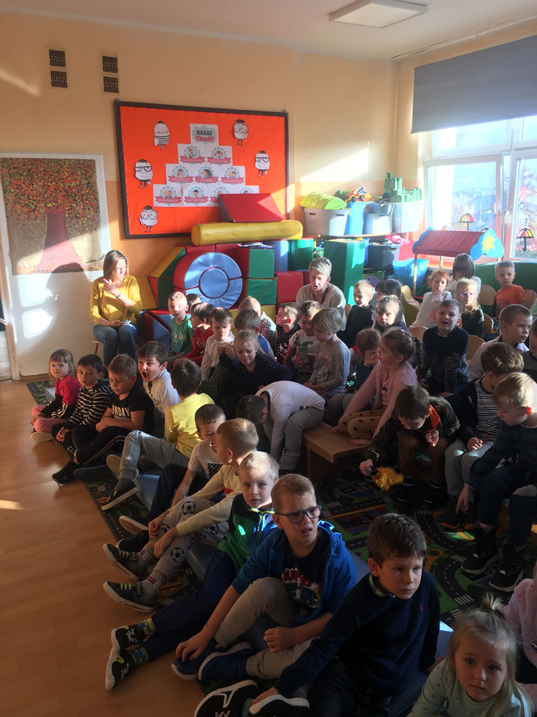 z Przedszkola nr 56 (grupa Sówki) oraz klasy 0a i 0b z naszej szkoły.