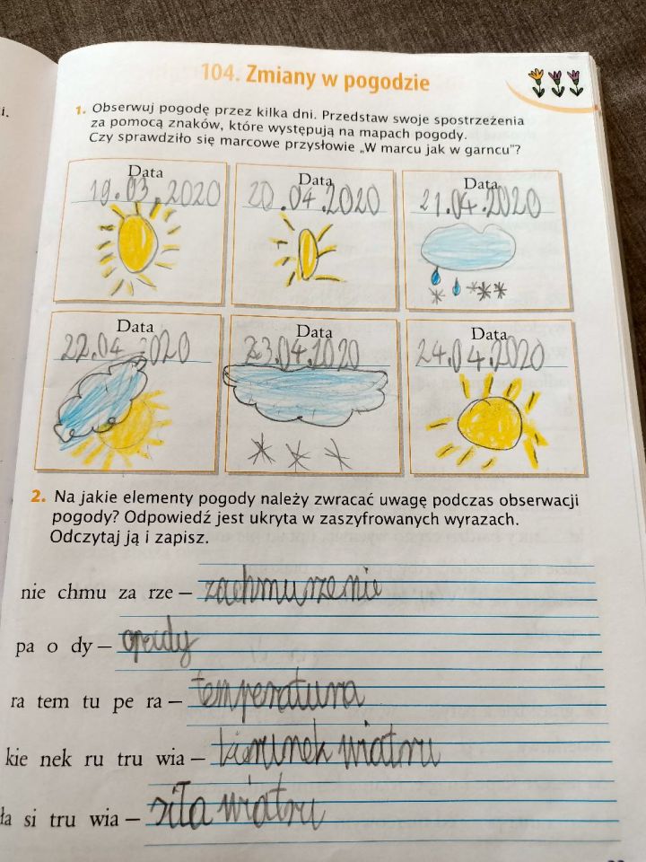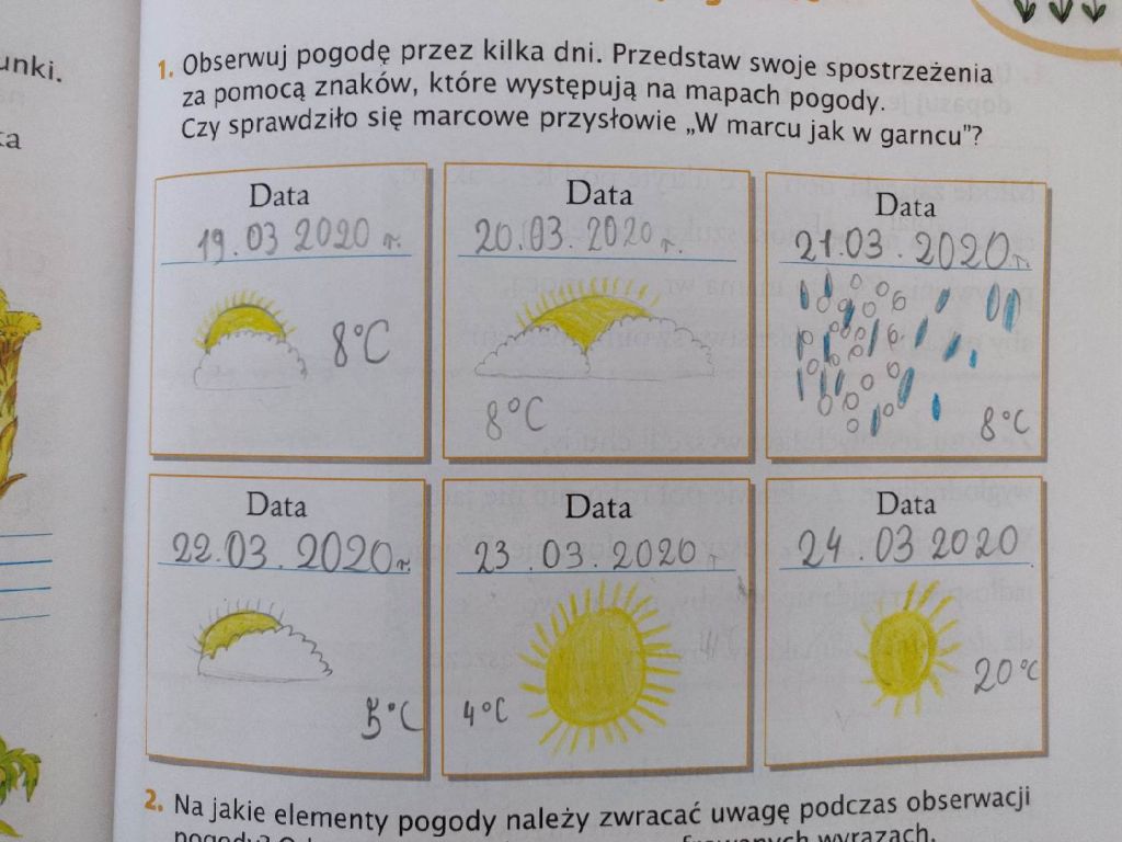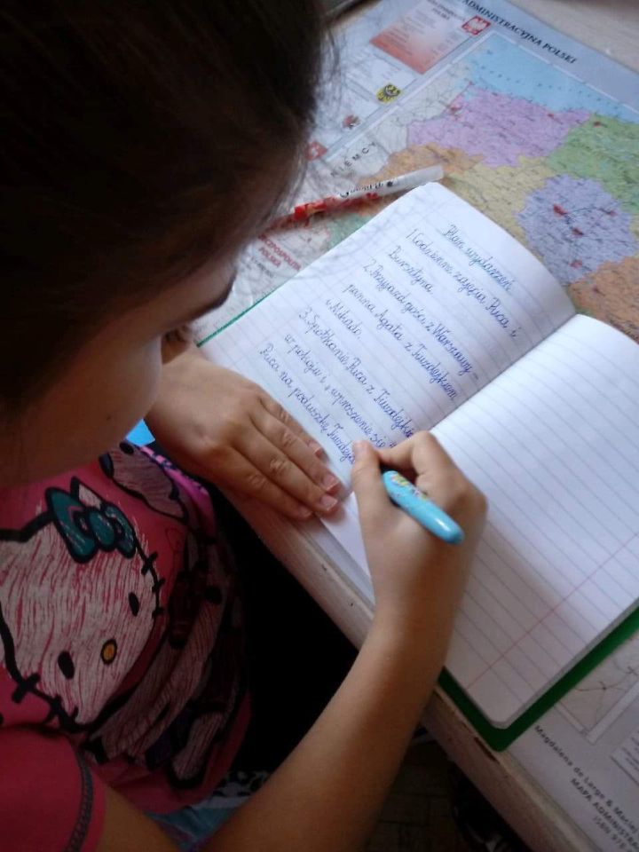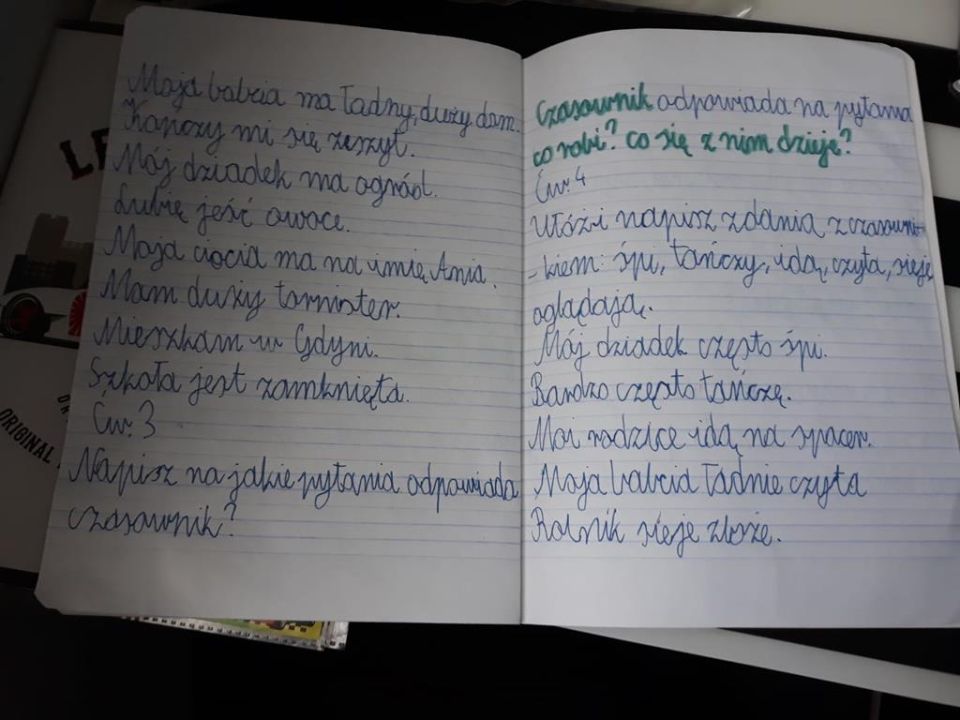 Tak pracuje w domu 1c. Choć to nie jest łatwe i fajniej byłoby robić wszystko razem w szkole, dzieci dzielnie wykonują zadawane codziennie