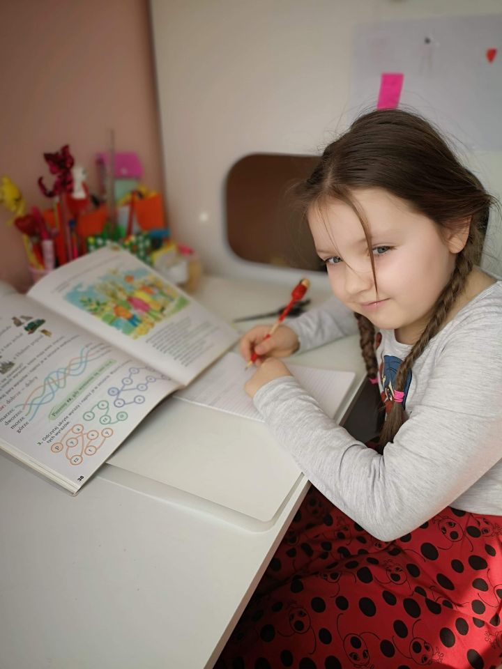 Czyta, pisze, liczy, wycina i koloruje. Pozdrawiamy i tęsknimy za szkołą.🤗🍀🌳🌼🌷🦋