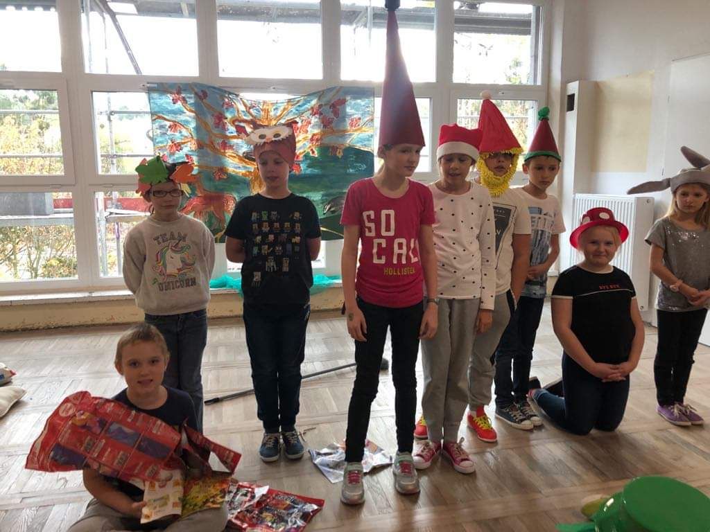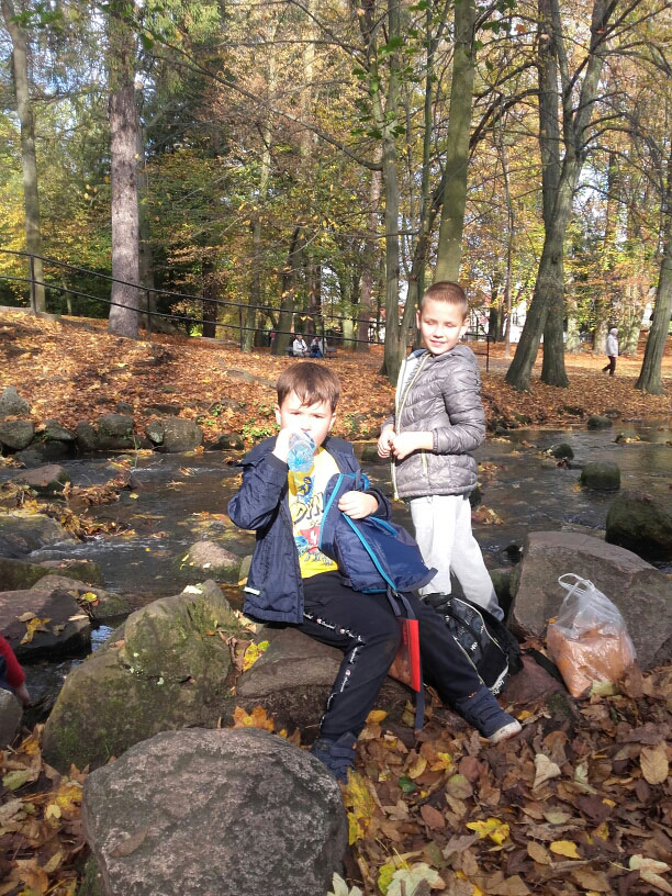 I taką właśnie piękną, złotą jesień spotkały dzieci z klasy 2c w Parku Oliwskim we wtorek 22.10. Wśród różnokolorowych liści czekały na nie jadalne kasztany, rude wiewiórki i kaczki krzyżówki. Cudowna pogoda zachęcała do wspólnych zabaw nad wodą, na parkowych alejkach i w Grotach Szeptów.