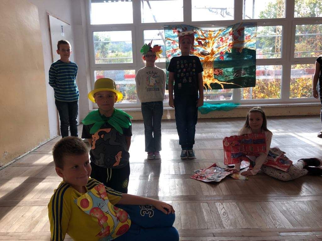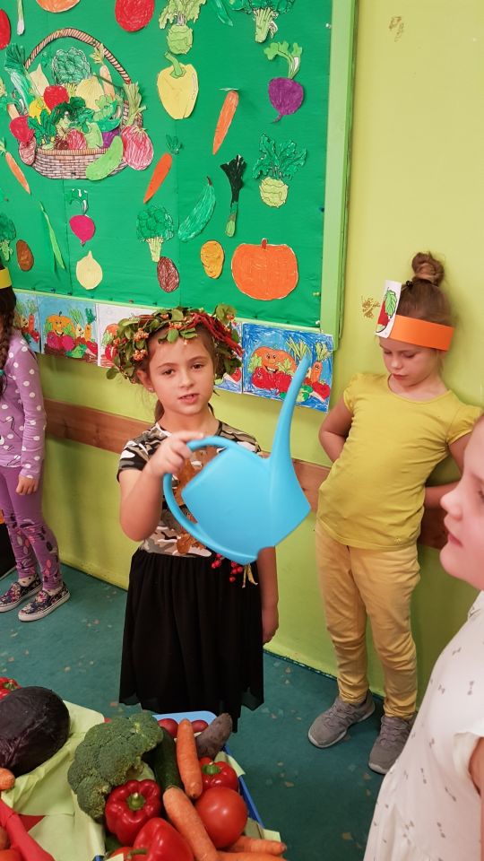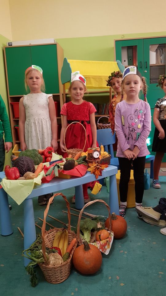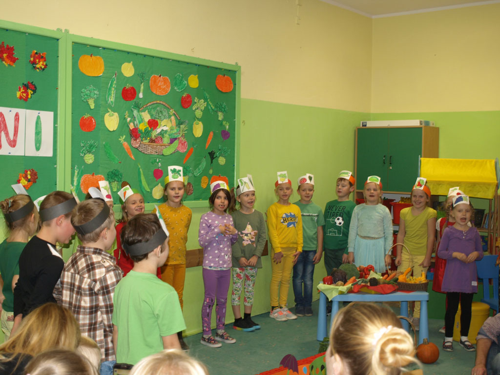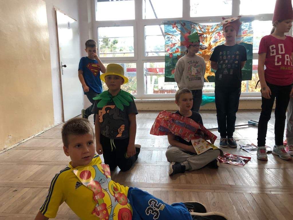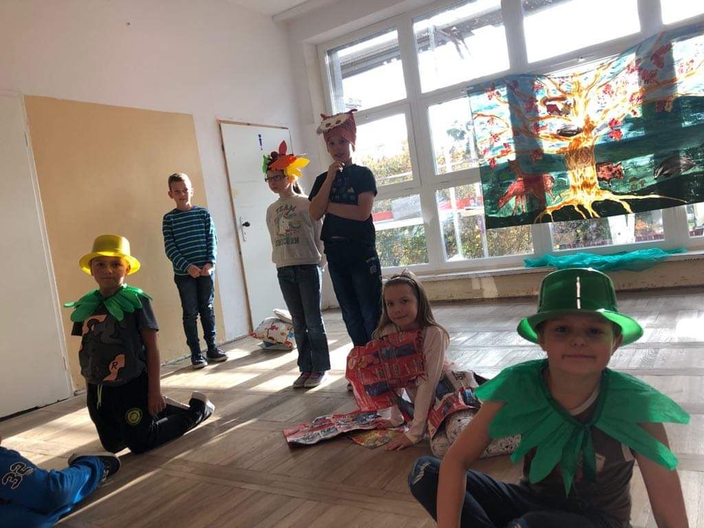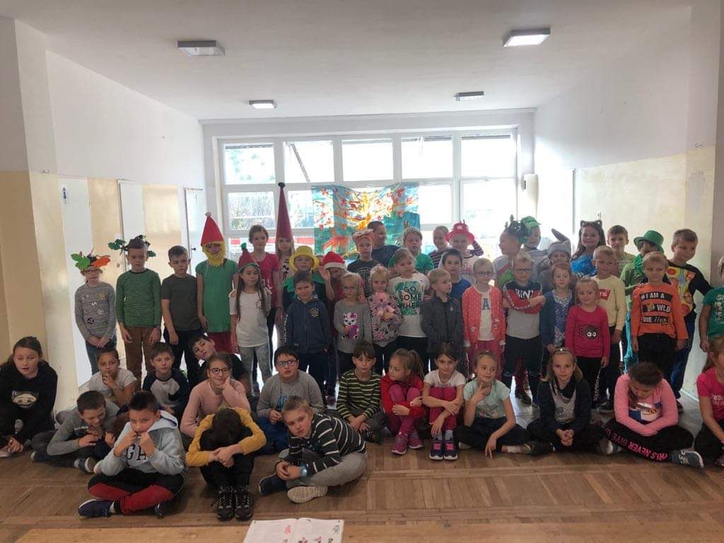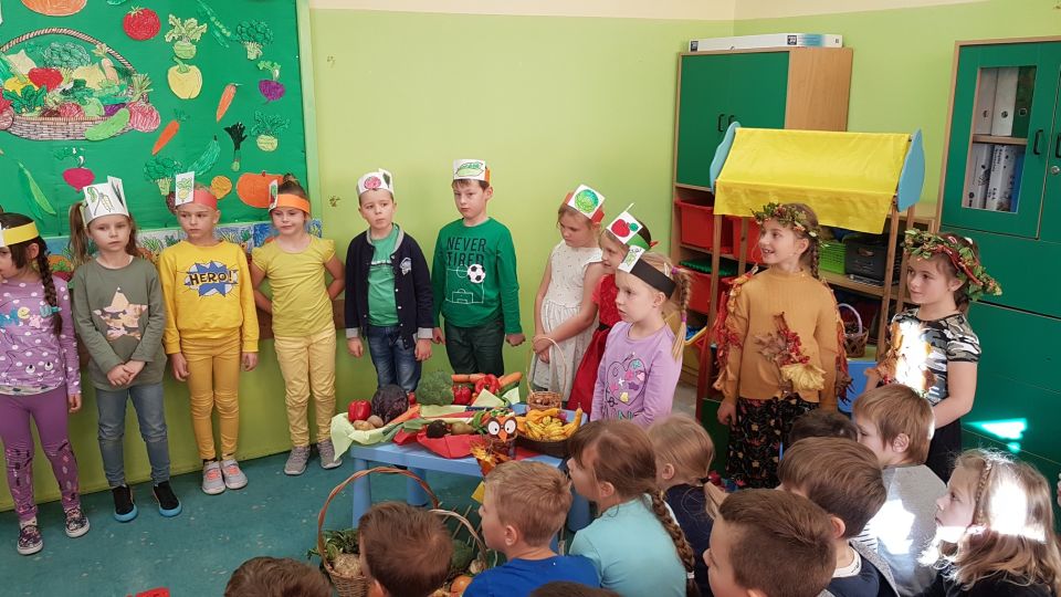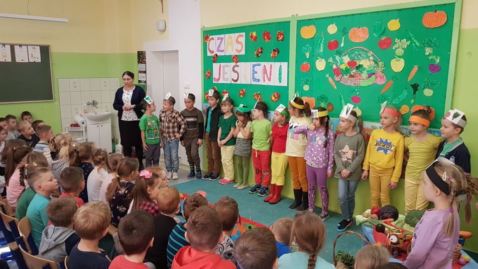 Barwne jesienne przedstawienie przygotowane przez klasę 1a obejrzały dziś dzieci klas młodszych oraz dzieci z zaprzyjaźnionych przedszkoli,