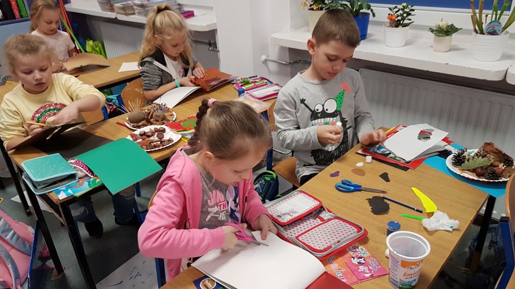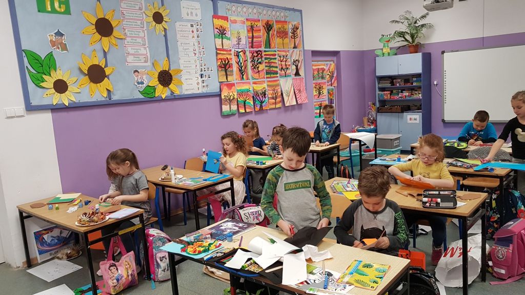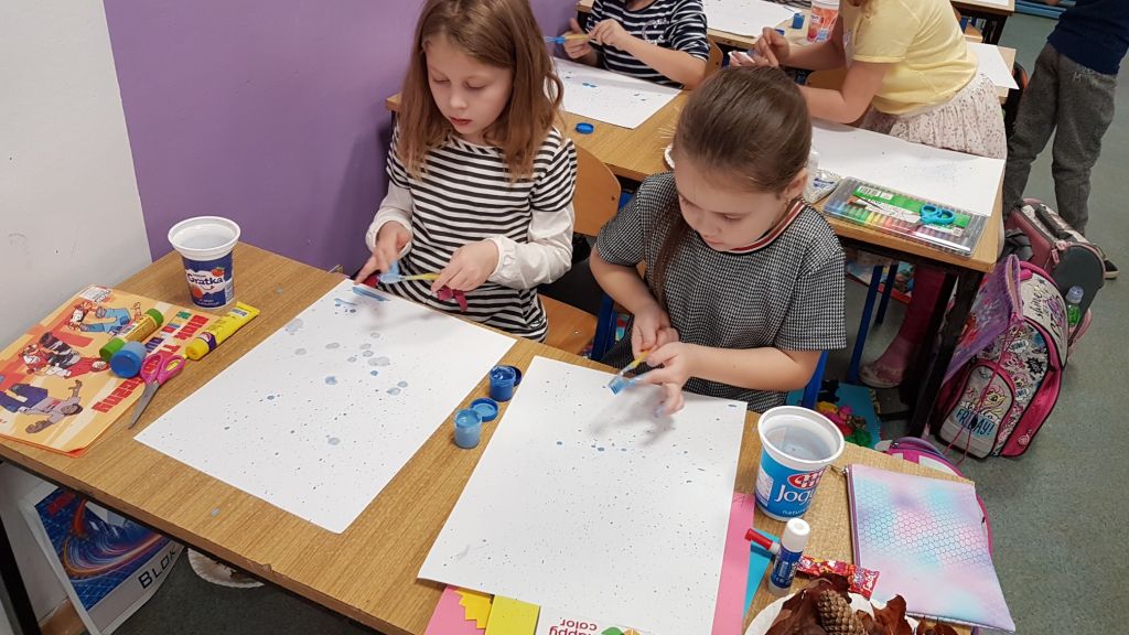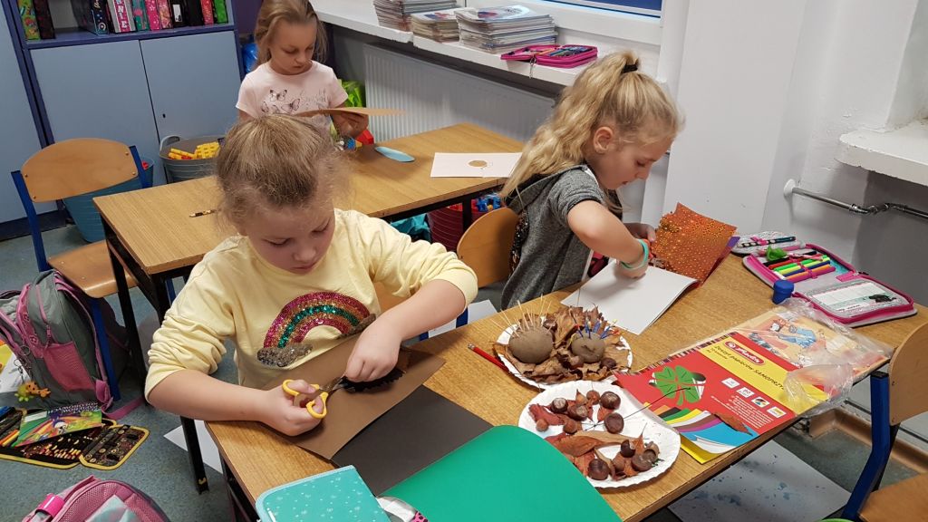 Wycinamy, wyklejamy, rysujemy, trochę się brudzimy i dużo się śmiejemy. Pracownia plastyczna w sali 29c. Tym razem galeria prac znajduje się na II p budynku C.