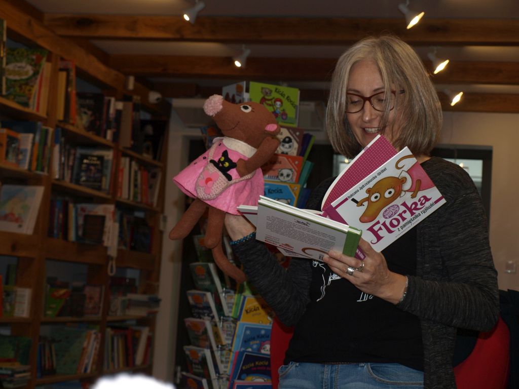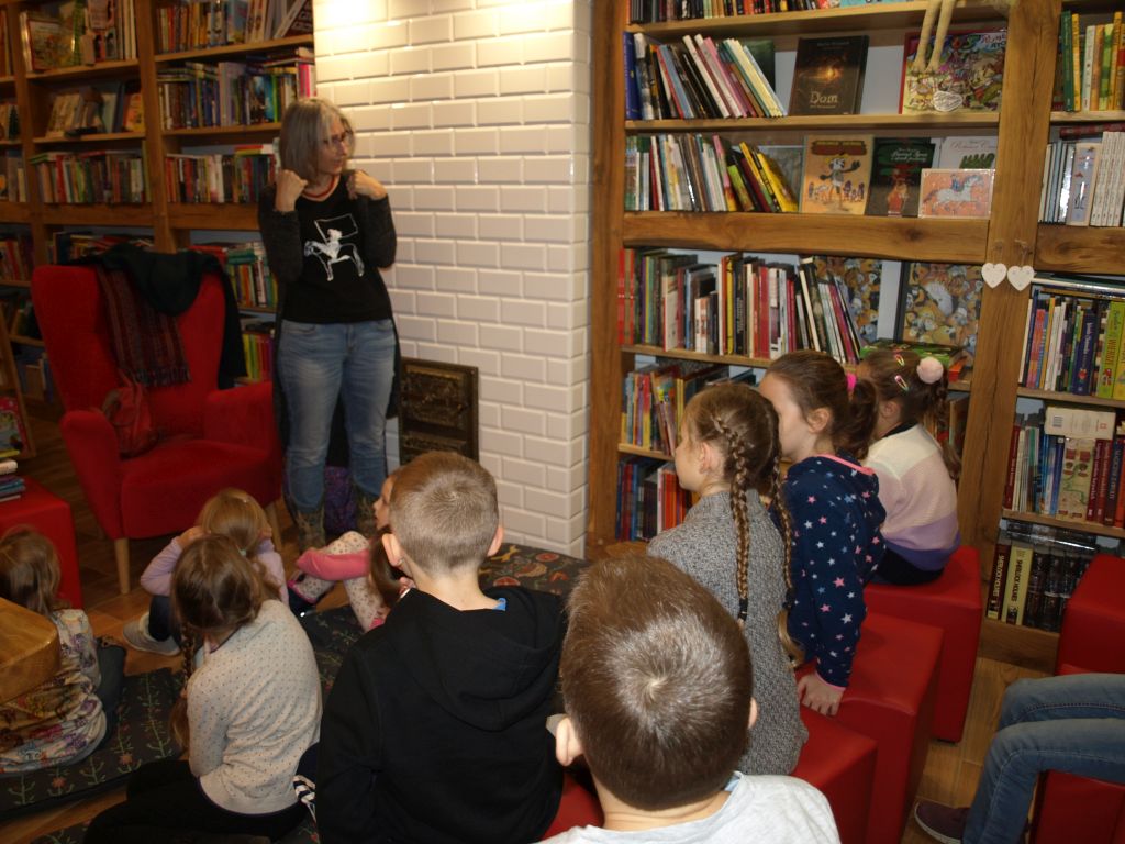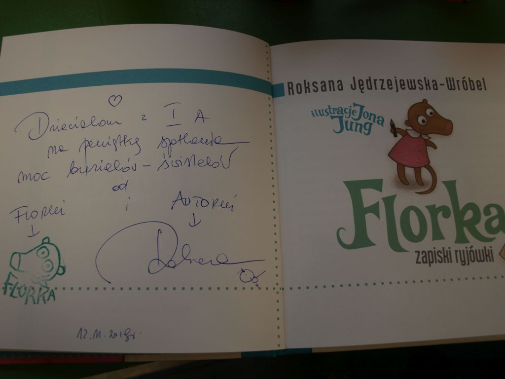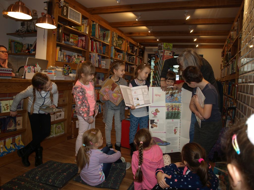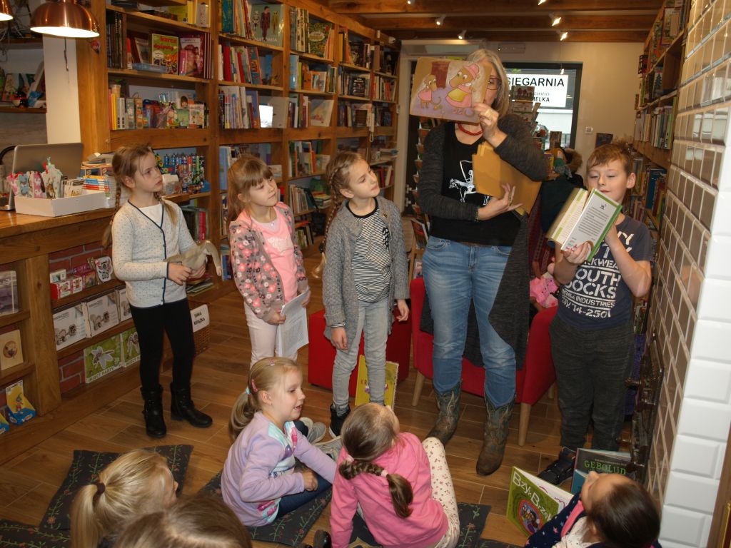 We wtorek 12 listopada klasa Ia odwiedziła pełną uroku i pachnącą książkami księgarnię Szymelka, mieszczącą się w centrum Gdyni. Dzieci zostały zaproszone na spotkanie z pisarką, Panią Roksaną Jędrzejewską-Wróbel, autorką wielu ciekawych książek dla dzieci. Pani Roksana opowiedziała dzieciom, w jaki sposób powstają książki, począwszy od pomysłu do gotowej książki w księgarni. Dzieci chętnie dzieliły się swoimi spostrzeżeniami, doświadczeniami i uważnie słuchały porad i wskazówek, jak zacząć pisać opowiadania i książki. Z uwagą wysłuchały także fragmentu książki Pani Roksany opowiadającej przygody ryjówki Florki. Na zakończenie dzieci otrzymały w prezencie książkę z dedykacją autorki. Bardzo dziękujemy Pani Ani z księgarni Szymelka za zaproszenie oraz Pani Roksanie za bardzo interesujące spotkanie w miłej atmosferze. Jednocześnie informujemy, iż w naszej szkolnej bibliotece znajdują się książki Pani Roksany Jędrzejewskiej-Wróbel, więc zachęcamy do czytania.