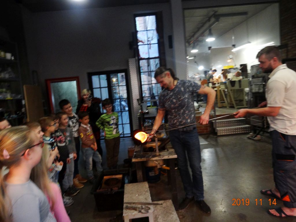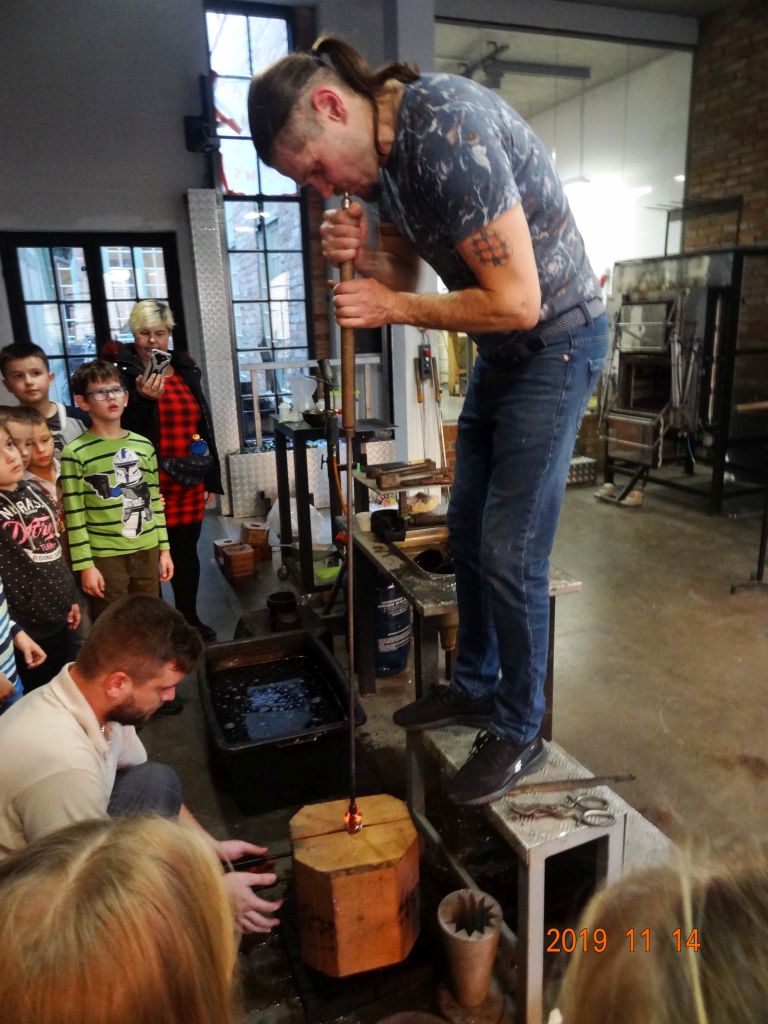przedmiotów ze szkła wytapianego w specjalnym piecu. Uczestniczyliśmy w pokazie dmuchania szkła oraz zostaliśmy oprowadzeni po szlifierni, gdzie następuje