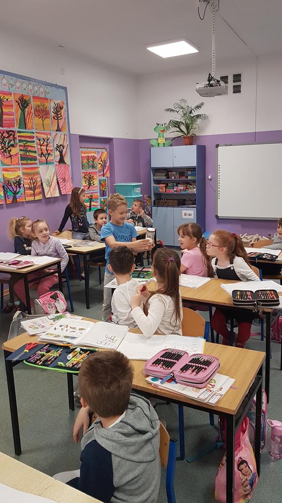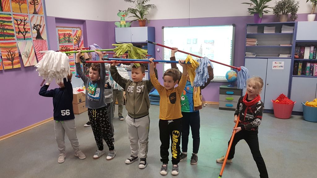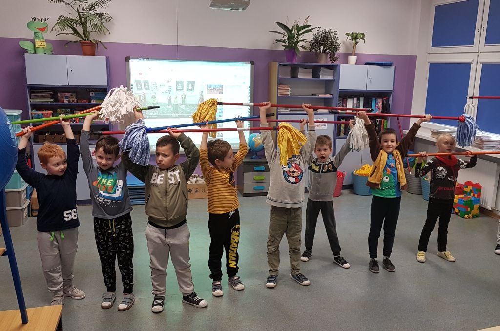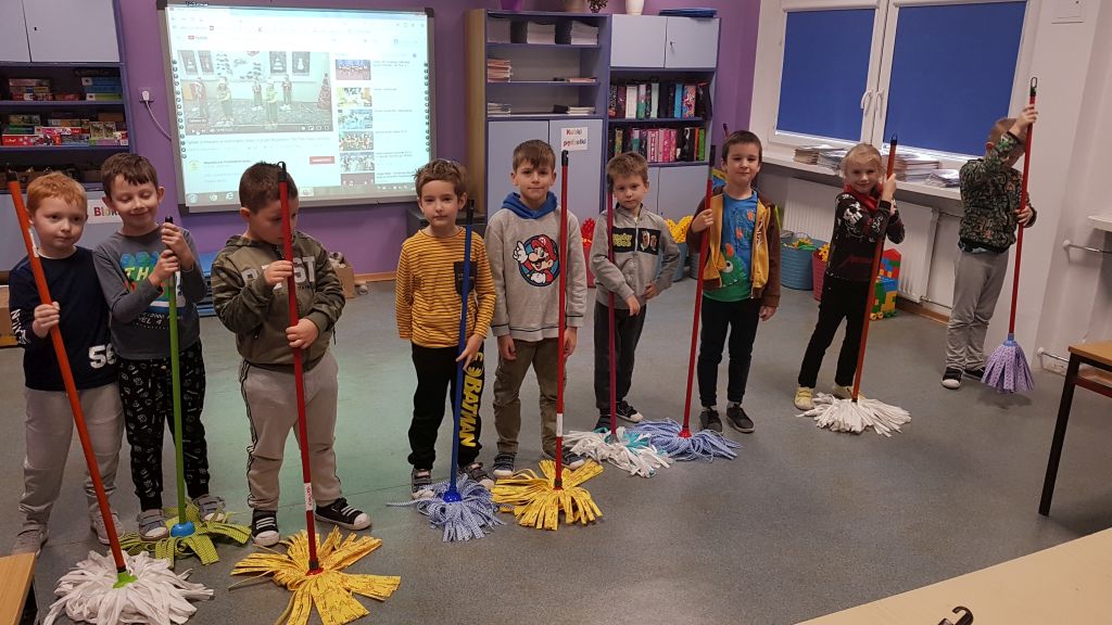Przygotowania klasy 1c do przedstawienia Mikołajkowego 6 grudnia już na półmetku. Sprzątamy, śpiewamy,