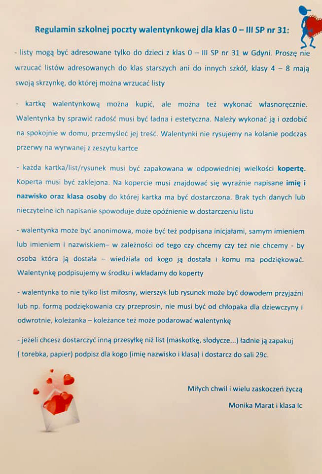 W tym dniu w klasach młodszych nie będzie zajęć lekcyjnych, wspaniałych rodziców - a tylko takich mamy w naszej szkole - prosimy o pomoc