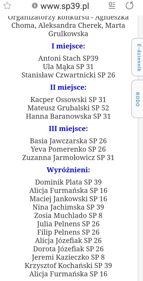 Bardzo, bardzo się cieszymy, gratulujemy dzieciom za udział, rodzicom za wsparcie i pomoc. Już niedługo dostarczymy otrzymane nagrody. Jeszcze raz gratulacje!!!!!