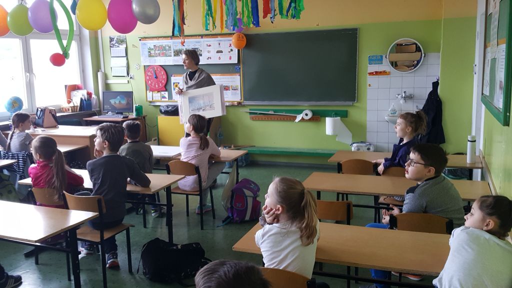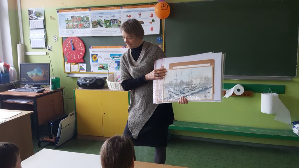 W dniu dzisiejszym mieliśmy przyjemność gościć panią mgr sztuki Hannę Haponiuk, która jest artystą plastykiem. W klasach trzecich przeprowadzila warsztaty z malarstwa. Na przykładzie swoich prac pokazała jak uzyskać perspektywę, głębię i cienie oraz kolorystykę podczas malowania naszego regionu.