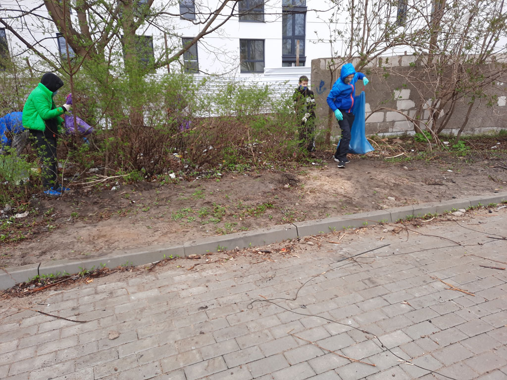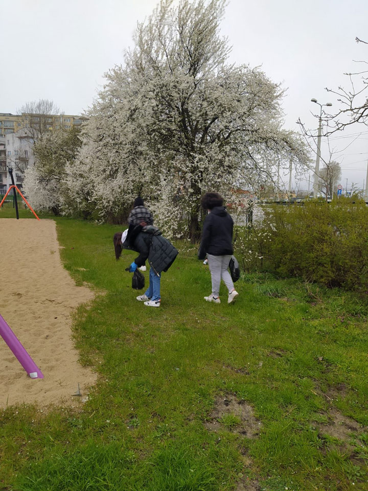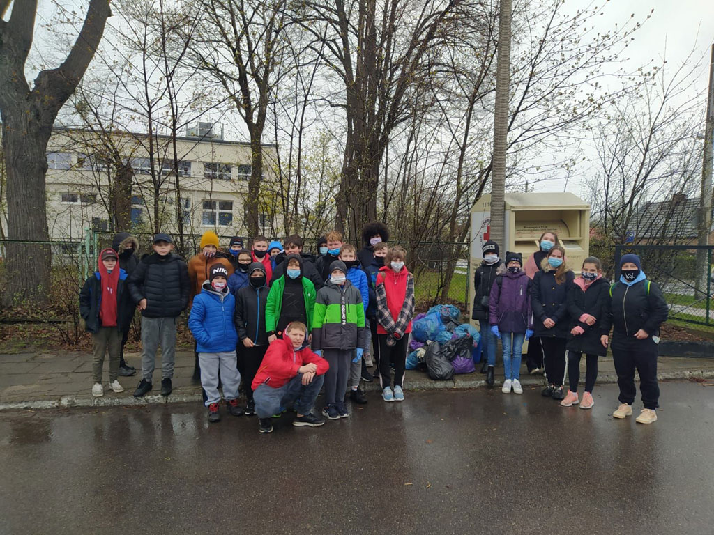 Pomimo wiatru, zimna i deszczu klasa 6c wraz z wychowawcą postanowiła uczcić Dzień Ziemi. Uzbrojeni w rękawiczki i worki na śmieci, zebrali się w komplecie i po pół roku nie widzenia się, zaczęli sprzątać teren szkoły. Po 45 minutach śmieci była spora sterta. Choć w ten sposób mogliśmy pomóc Matce Ziemi. Stęsknieni za sobą zbierali śmieci, a rozmowom nie było końca.