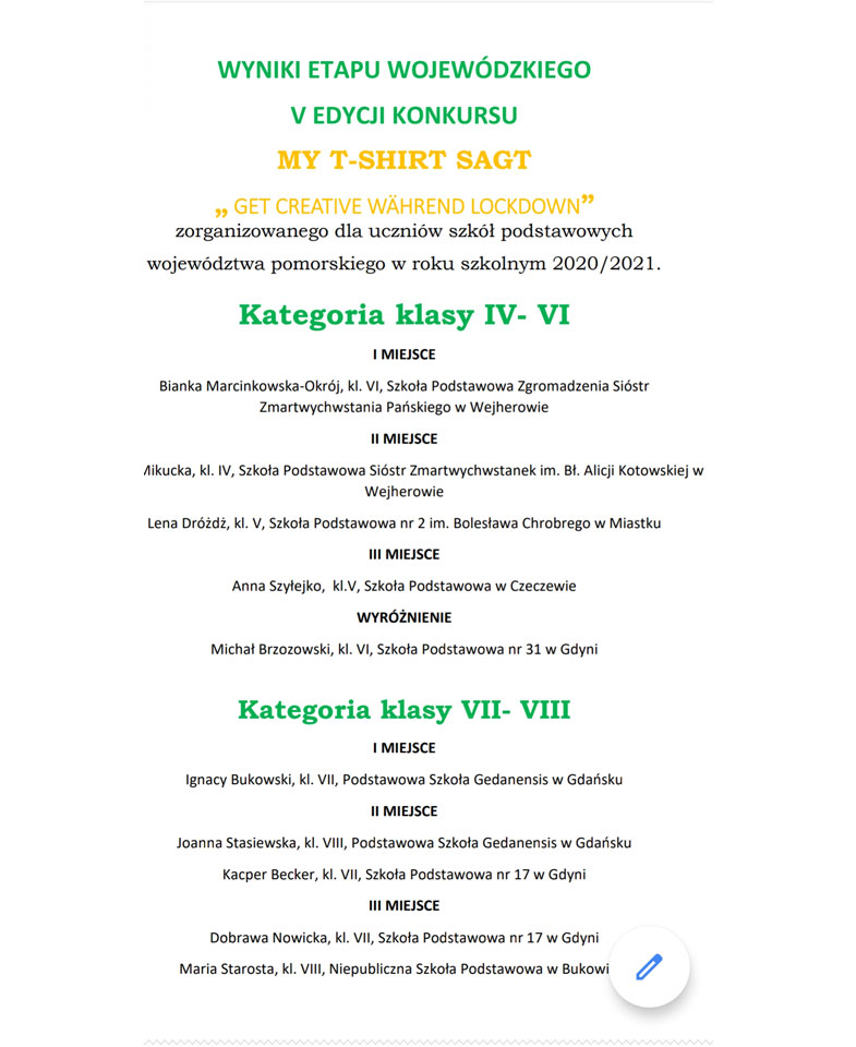 związanych ze środowiskiem nadmorskim. Prace napisane zostały w języku angielskim, limit słów - 250. Prace dwóch naszych uczniów zostały docenione przez międzynarodowe