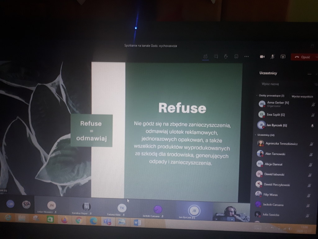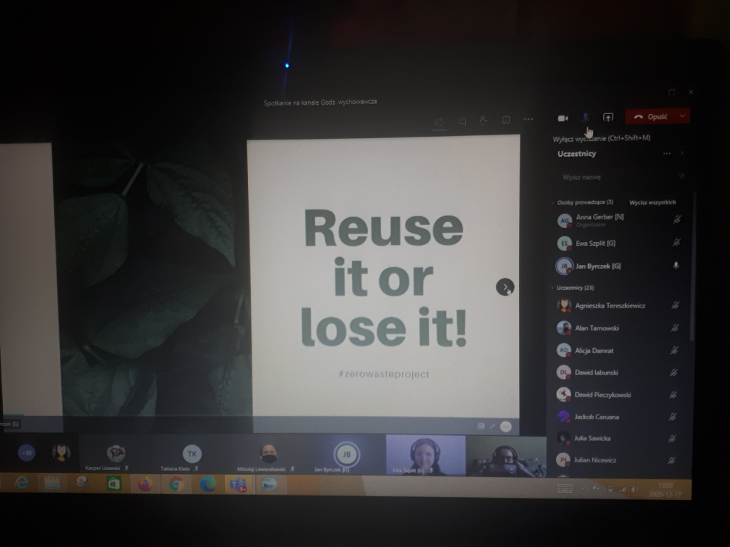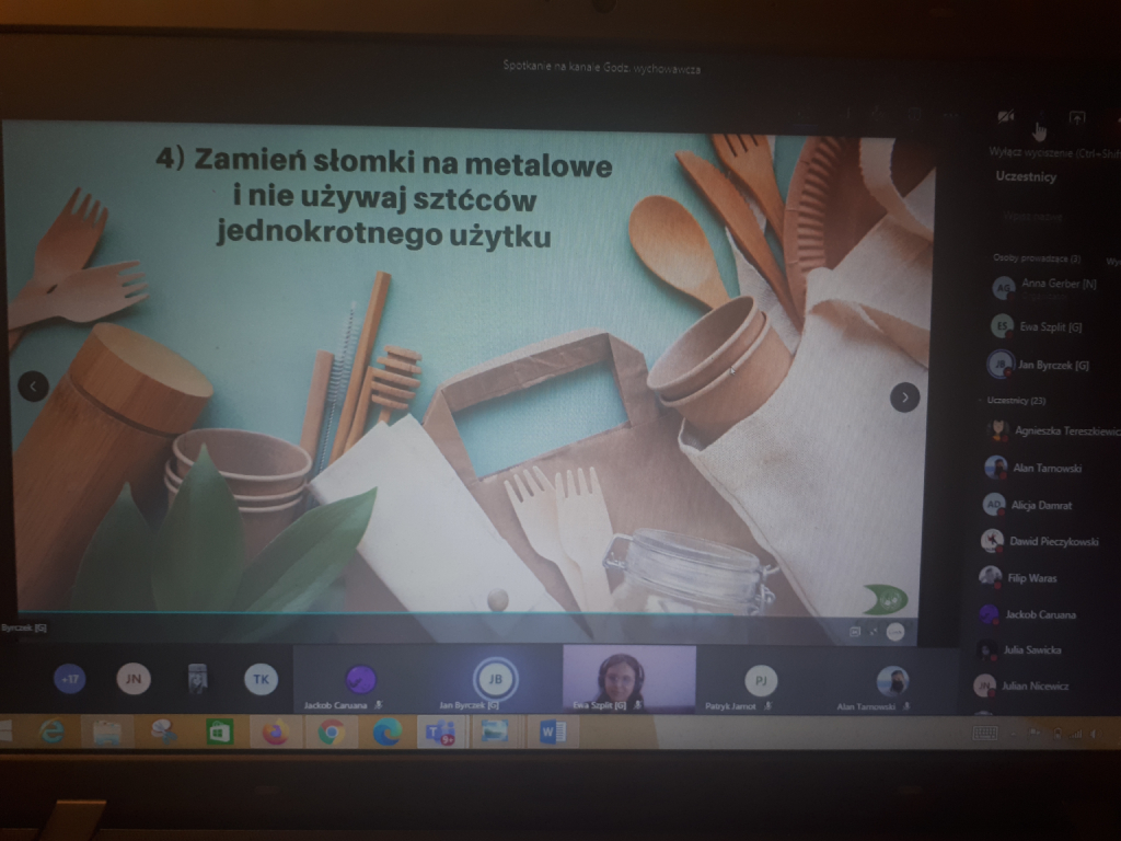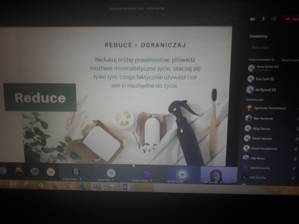 W dniu 17 grudnia lekcja geografii w klasie 7A poświęcona była promowaniu założeń zero waste i świadomości ekologicznej. Gościliśmy na zajęciach Pana Jana Byrczek i Panią Ewę Szplit