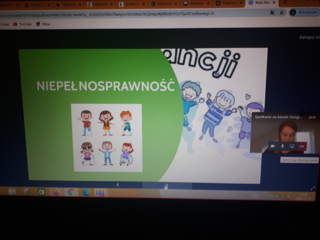 W dniu 16 grudnia dzięki możliwościom współczesnej techniki na godzinie wychowawczej w klasie 7A zajęcia poprowadziła Pani Zuzanna Chmielewska.