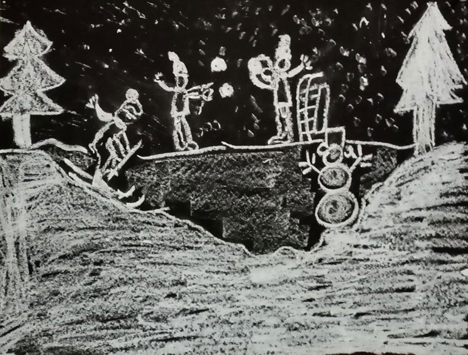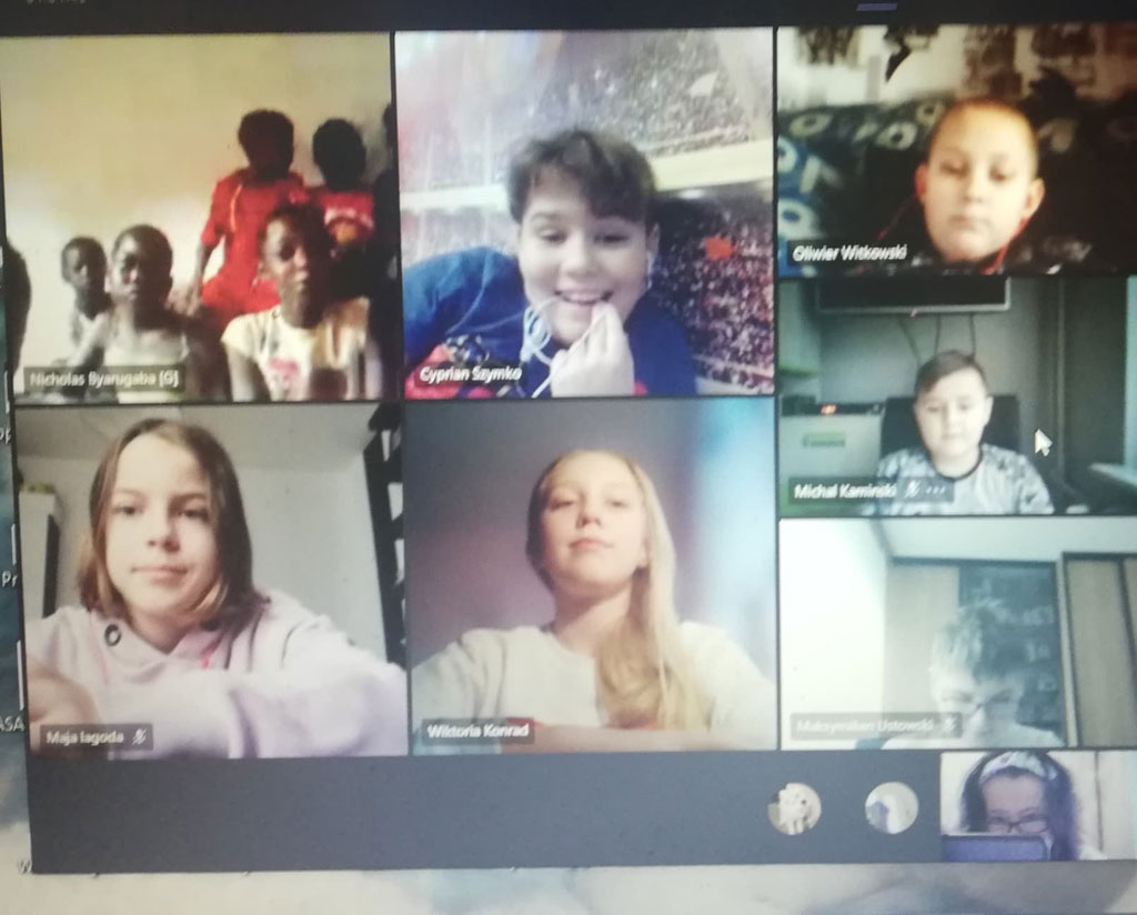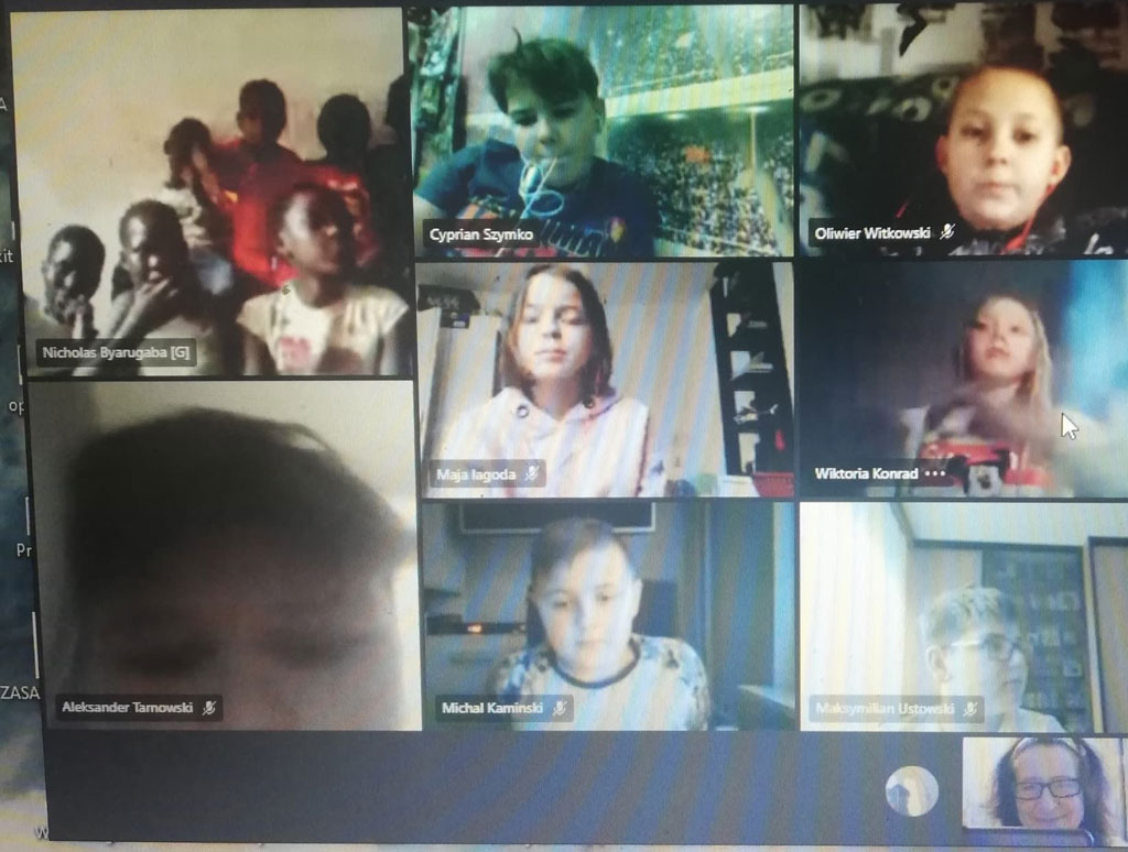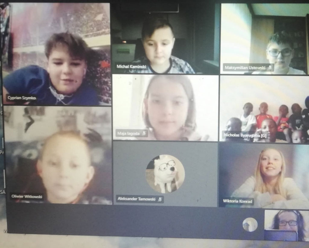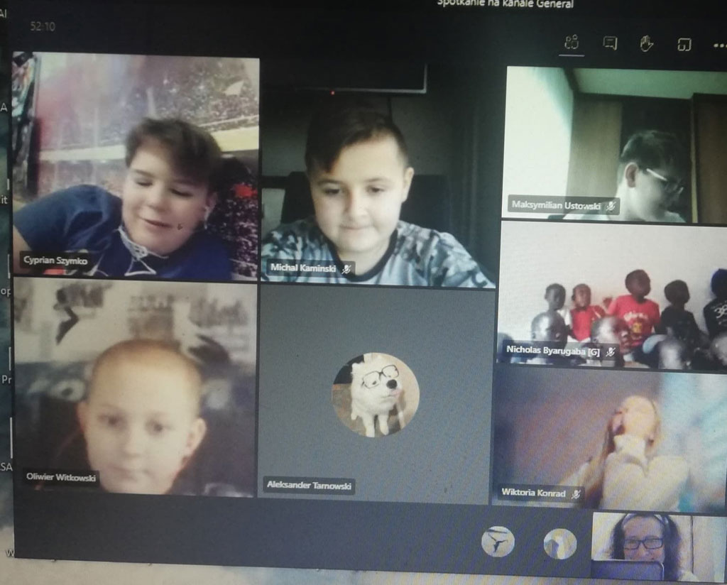 wyginąć, jakie zwierzęta lubi, jakich one się boją. Na koniec lekcji było połączenie z dziećmi z Ugandy i wróciliśmy do tematu śniegu, którego te