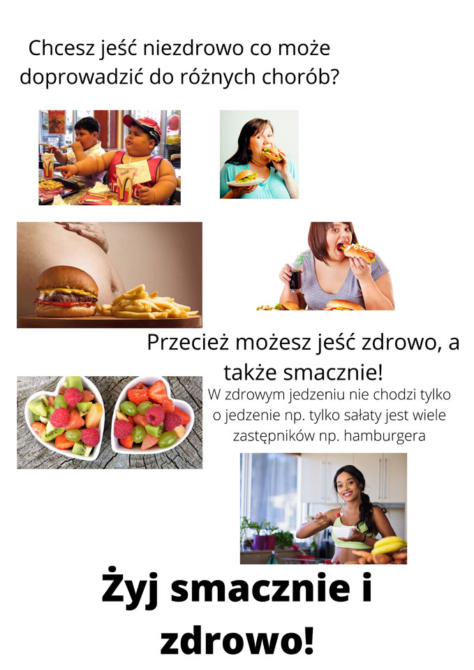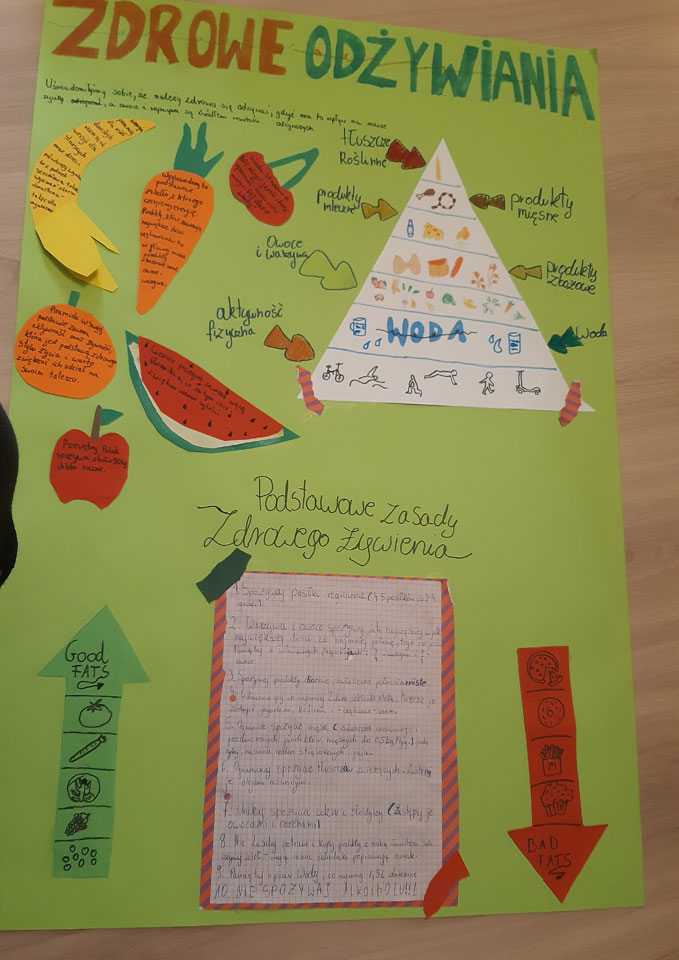 7A jako klasa sportowa ze sporą ilością niesamowitej energii, doskonale radząca sobie w sportowych zmaganiach na boisku do piłki nożnej i piłki ręcznej, doskonale wie w jaki sposób możemy wpłynąć na stan i kondycję naszego organizmu! Na zajęciach wychowawczych podejmowaliśmy tematykę zdrowego odżywiania. A oto niektóre prace.