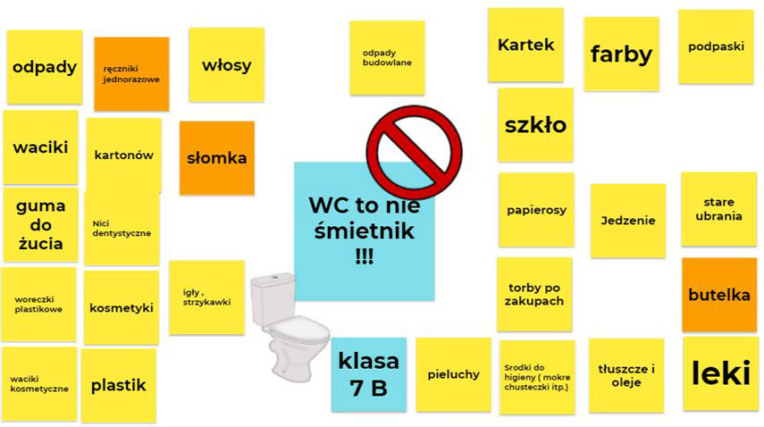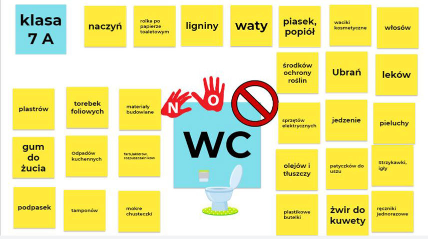zachowań dotyczących wyrzucania śmieci do toalety. Po zgłębieniu tematu oraz zapoznaniu się miedzy innymi z materiałami edukacyjnymi przygotowanymi