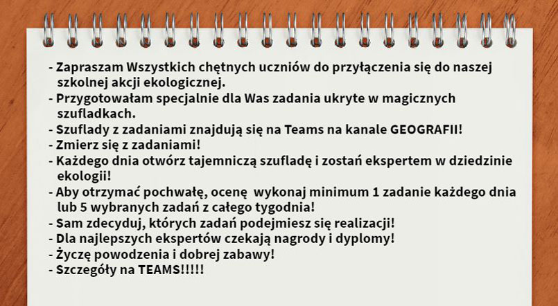 Uczniowie wszystkich klas VII na lekcjach online z geografii aktywnie włączyli się w realizację zadań w ramach projekty ekologicznego