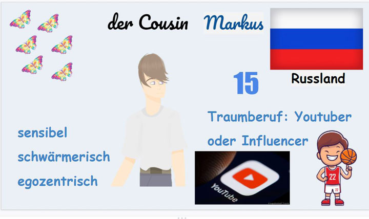 Wybraliśmy nazwisko dla naszej fikcyjnej rodziny - „Familie Schmetterling”. Wspólnie z innymi szkołami w projekcie stworzyliśmy