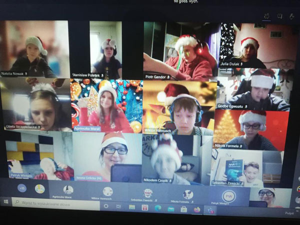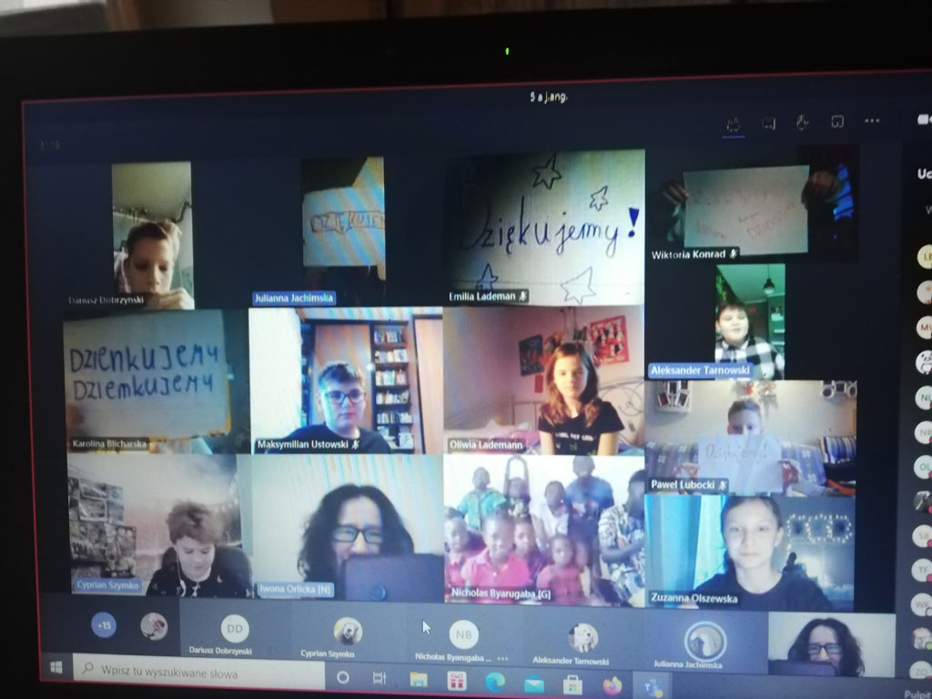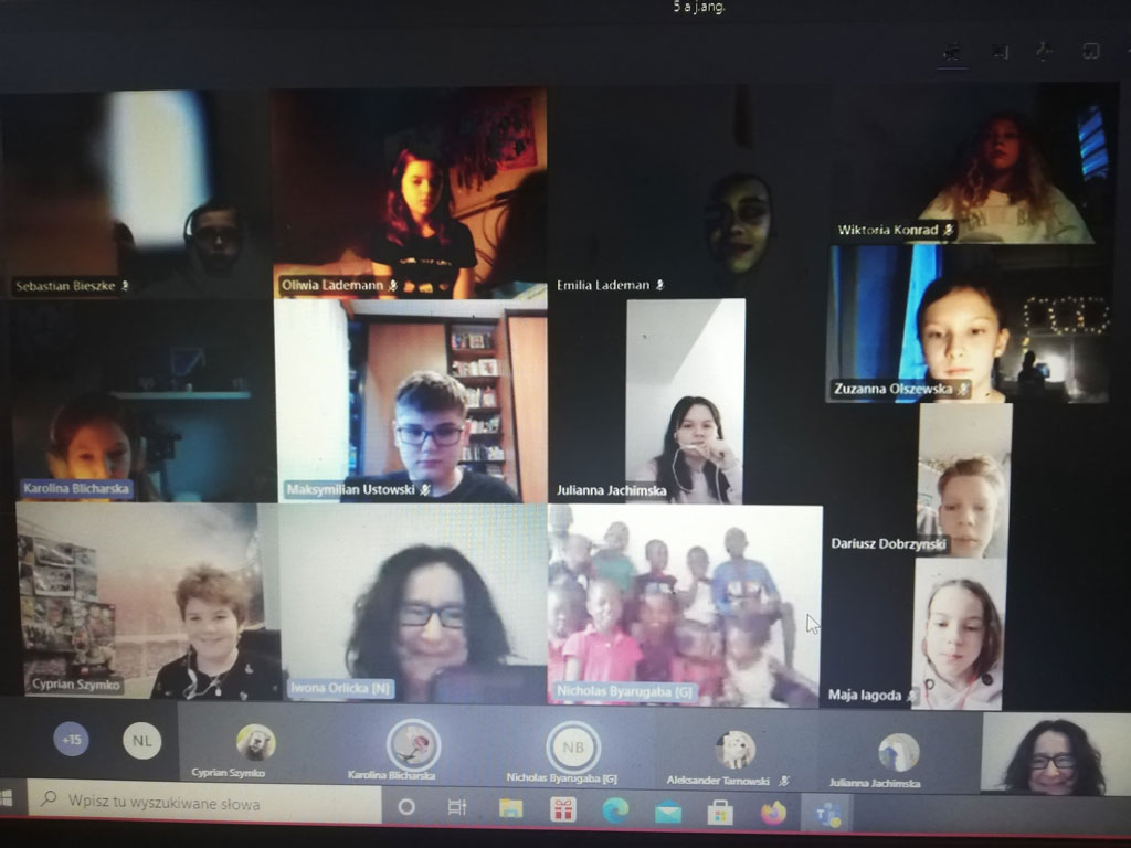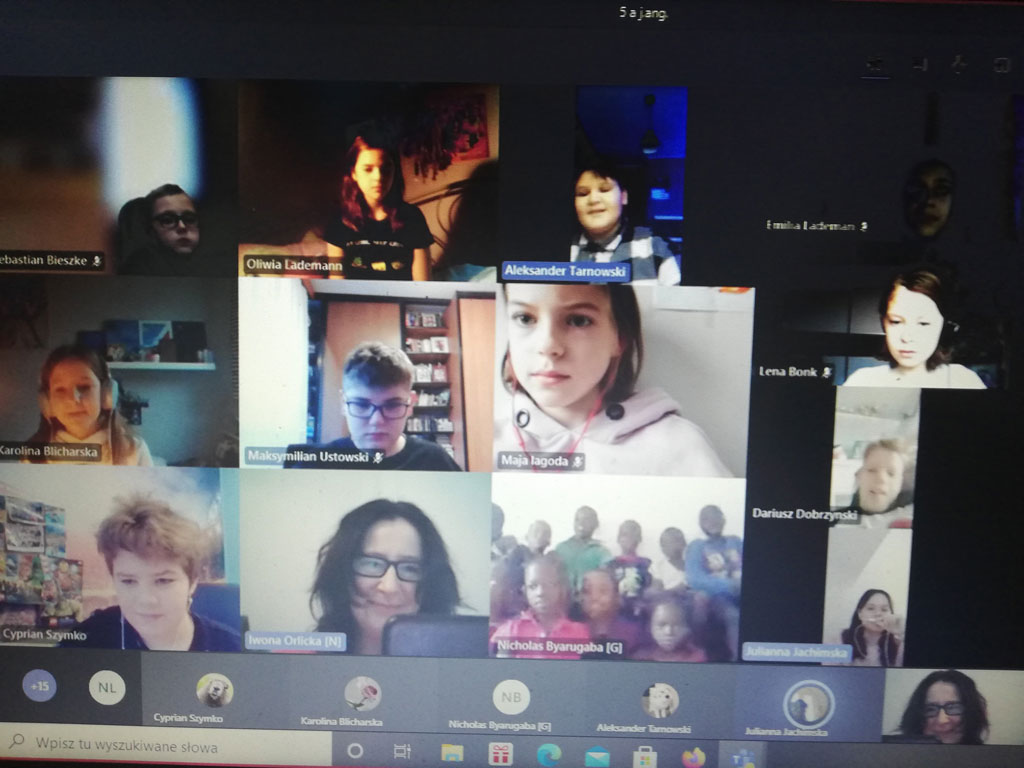 W sobotę 5. 12. 2020 r. na moją prośbę 8 osób z klas: 5a i 6d połączyło się z dziećmi z Helping Hand z Ugandy.