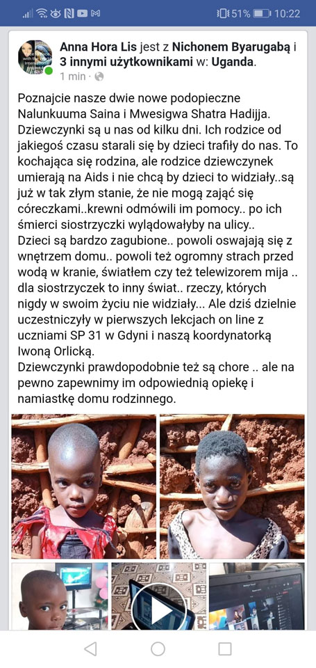 potwierdzenia od Pani Anny. Nie umieszczamy wszystkiego na stronie, gdyż sytuacja w Ugandzie jest na tyle niebezpieczna,
