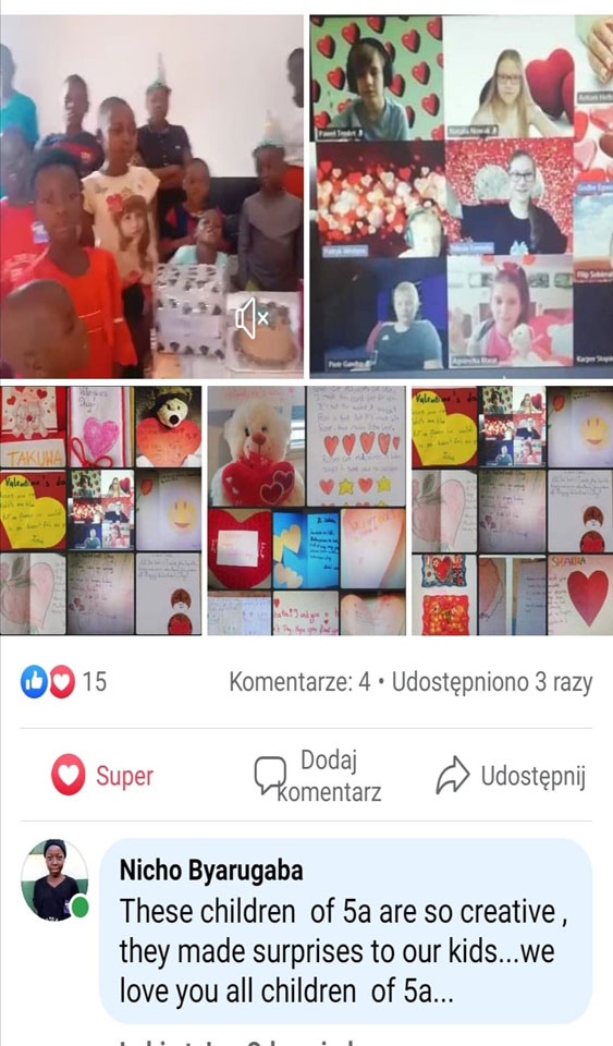 Walentynkowe kartki są dla 17 dzieci od Pana Nicho i 20 dzieci od Pani Mirembe.
