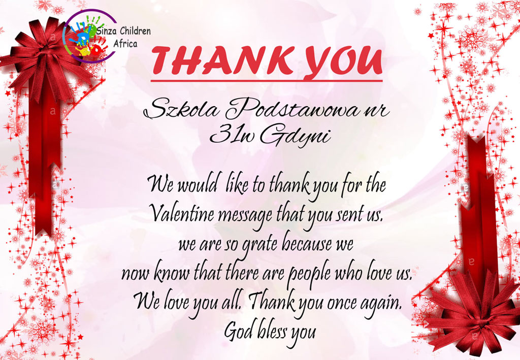 Pani Gladys i Pan Nicho podziękowali dzieciom i szkole ze walentynkowe niespodzianki.