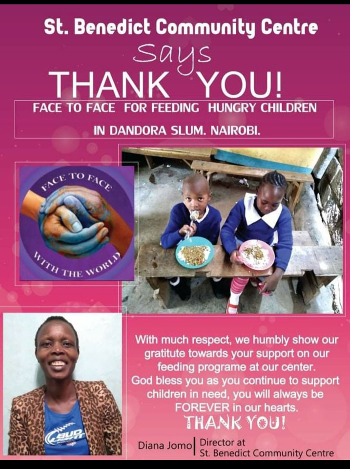 Pani Diana Jomo wykazuje ogromną troskę o te dzieci. Dzięki St. Benedict Community Centre w Kenii dzieci spędzają czas w przyjaznych warunkach, nie chodzą na wysypiska śmieci,