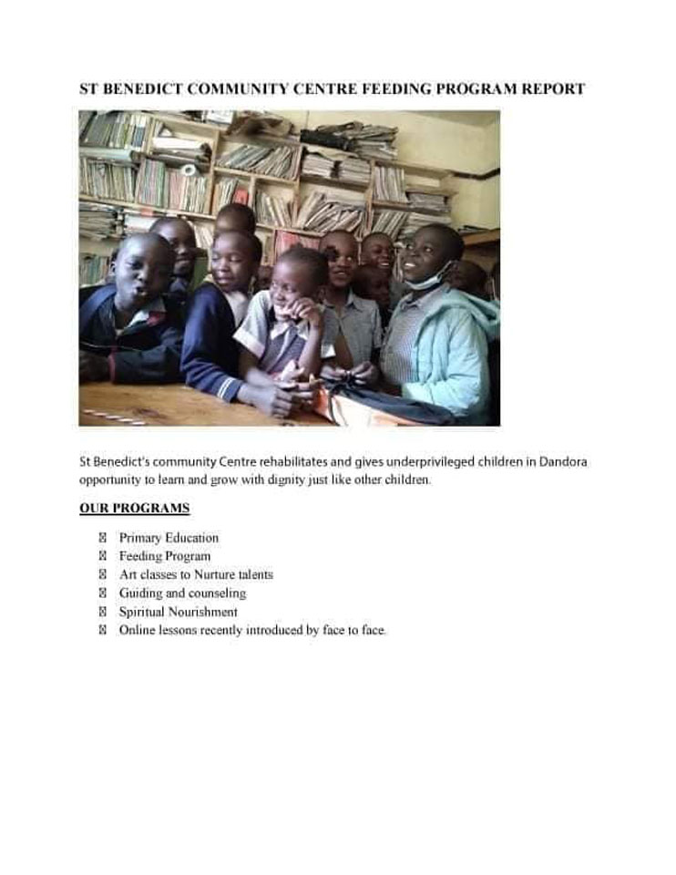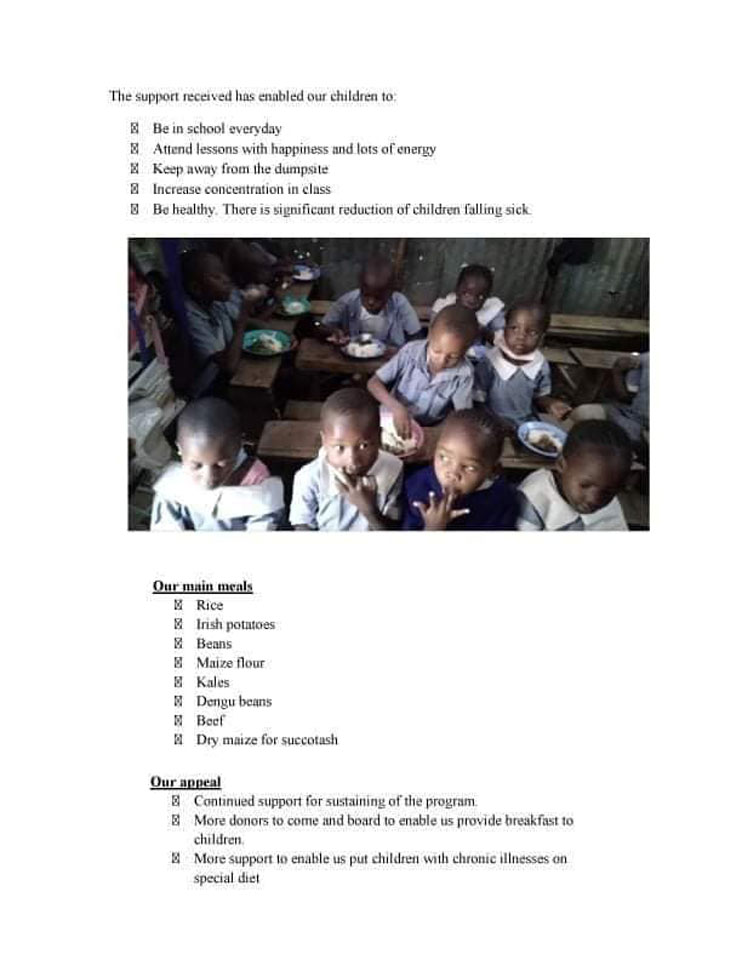 Pomagamy w dożywieniu tych dzieci. Zbiórka trwa przez cały marzec. Pani Diana Como St. Benedict Community centre Dandora Kenya przesyła
