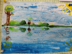 Uczniowie z klasy 3c w oczekiwaniu na nową porę roku stworzyli przepiękną galerię obrazów "Wiosna w tafli wody".