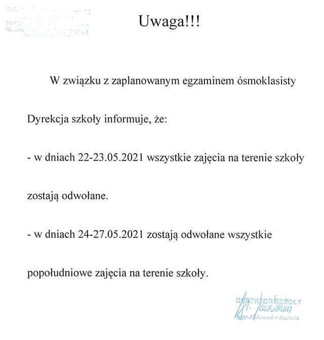 Przypominamy: uczniowie uczący się stacjonarnie zgłaszają przejazdy do szkoły swoim wychowawcom.