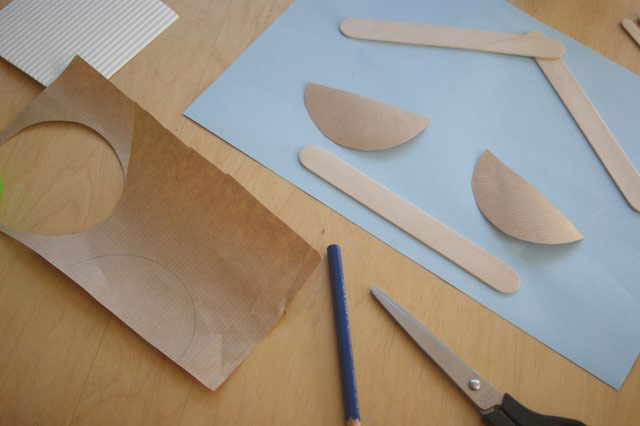 3. Z białej tekturki falistej wycinamy mniejsze półkola na skrzydła oraz ogony.