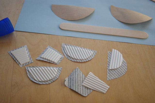 Można też od razu nakleić tekturkę a potem wyciąć gazetę w nieco większym kształcie.