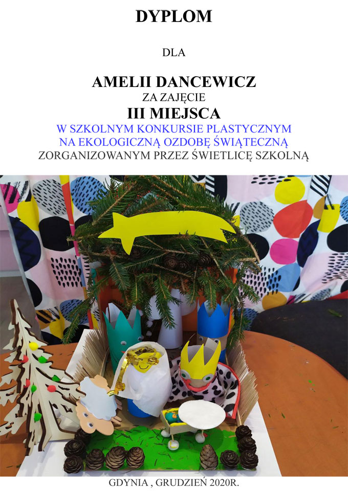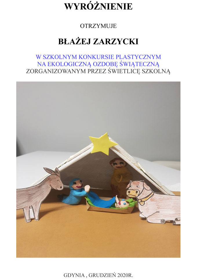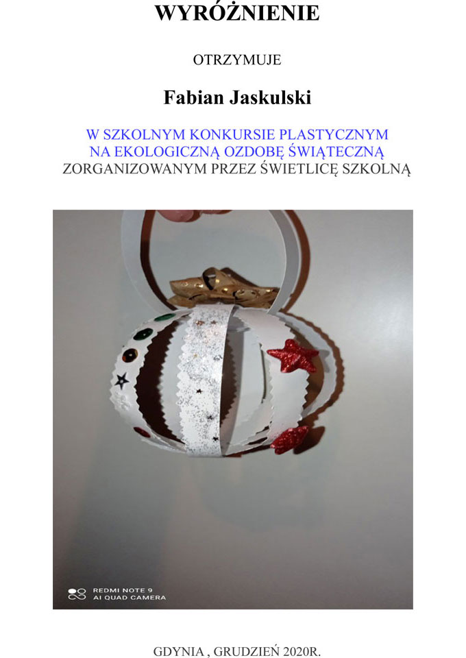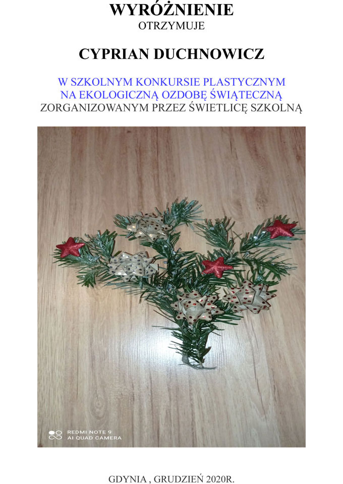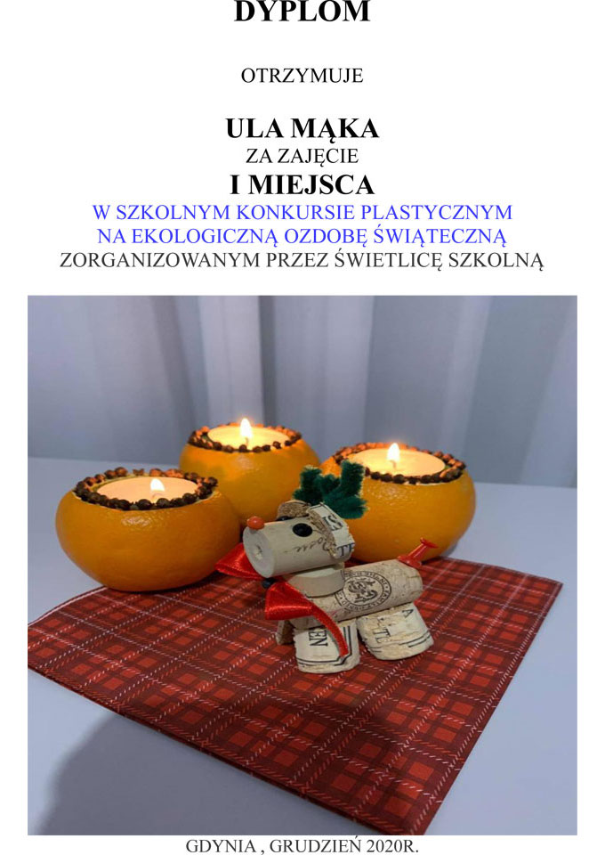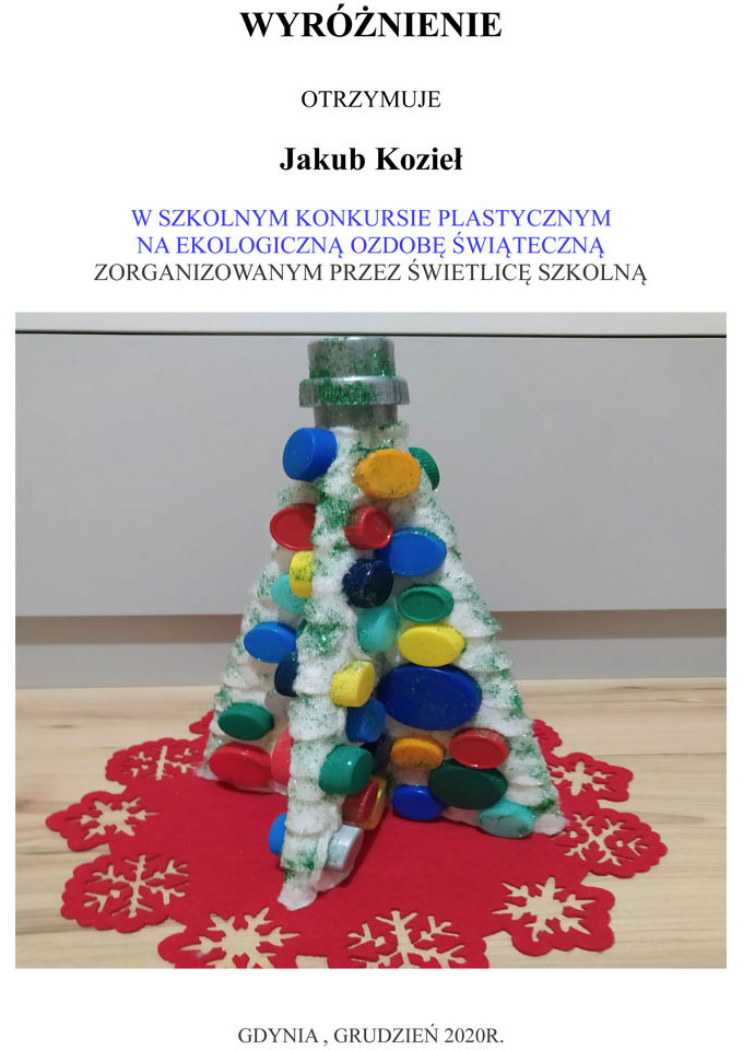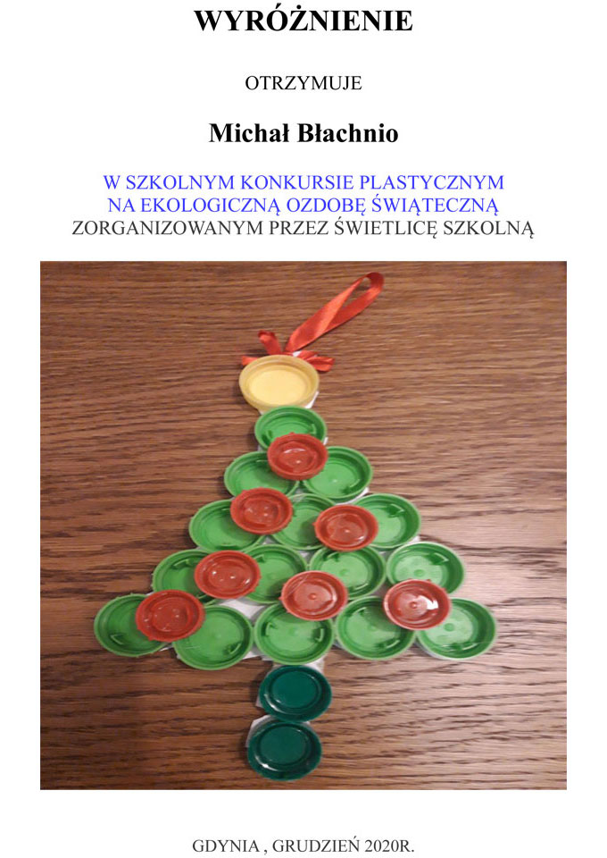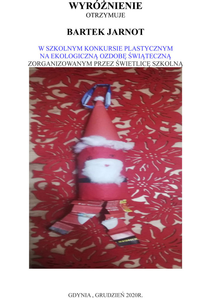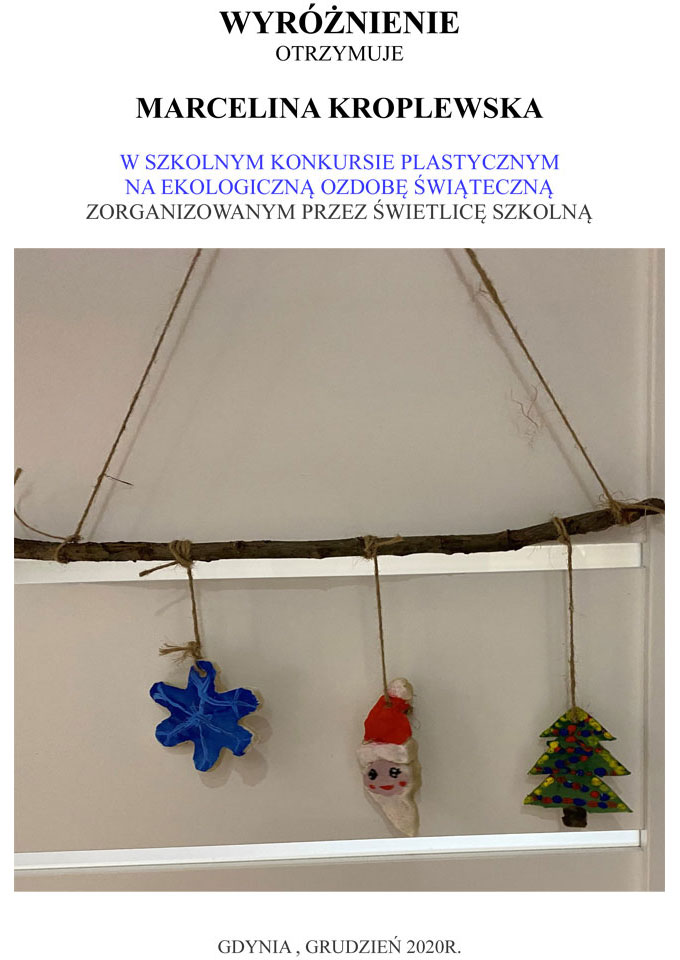 WYNIKI KONKURSU SZKOLNEGO NA EKOLOGICZNĄ OZDOBĘ ŚWIĄTECZNĄ 2020