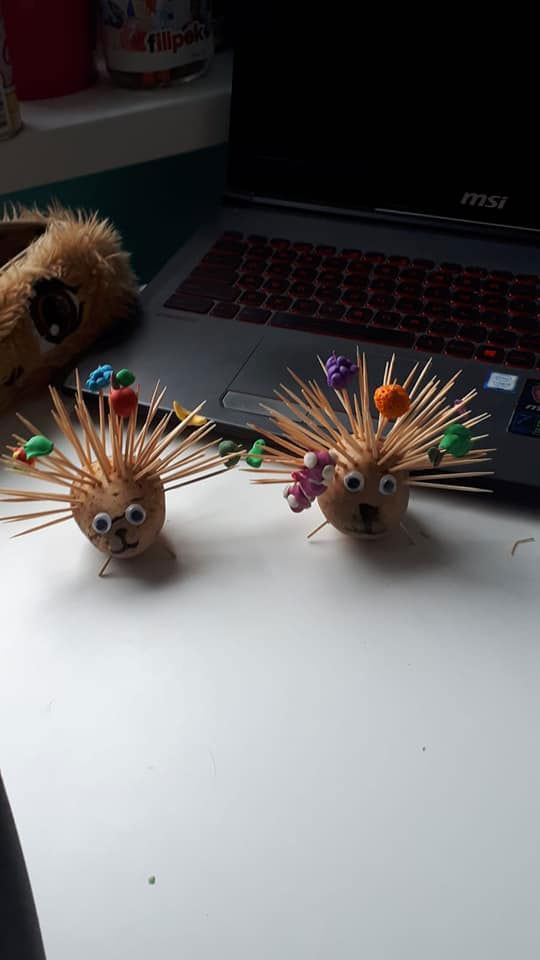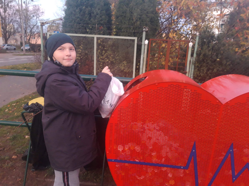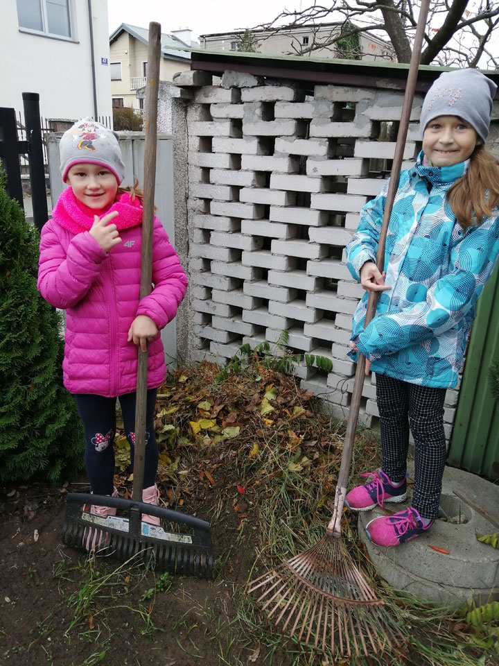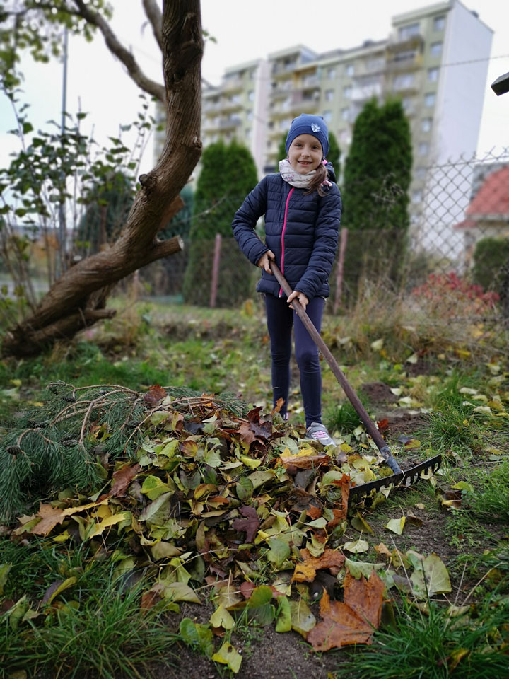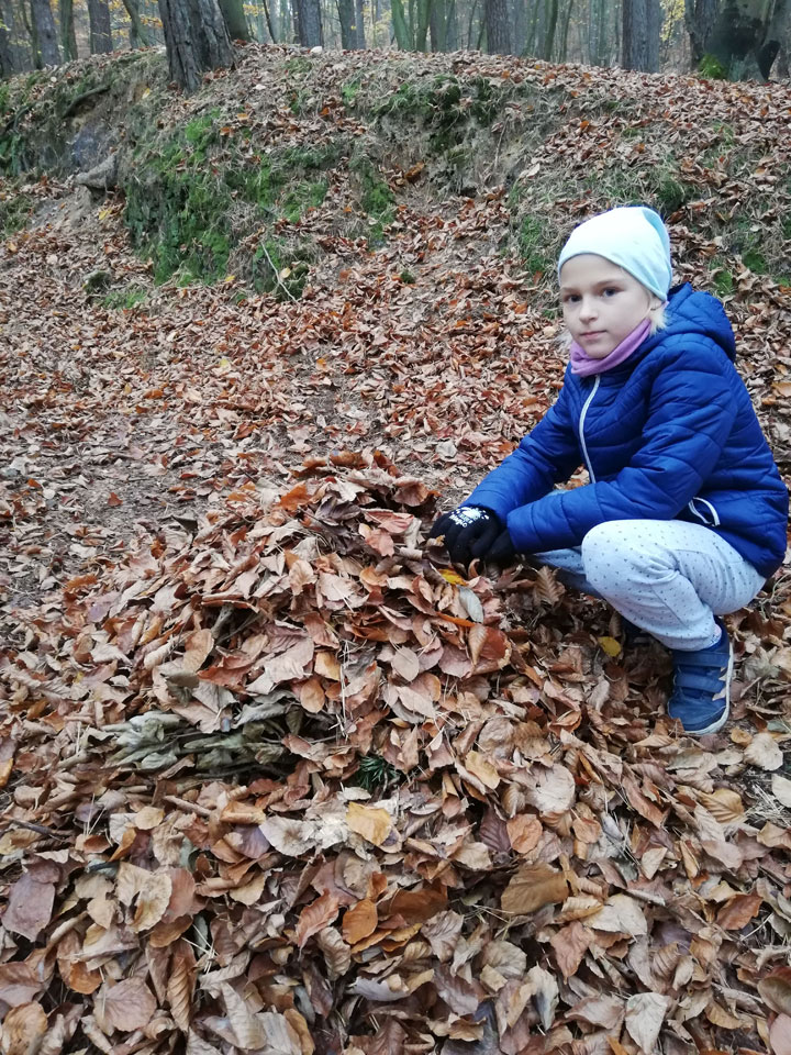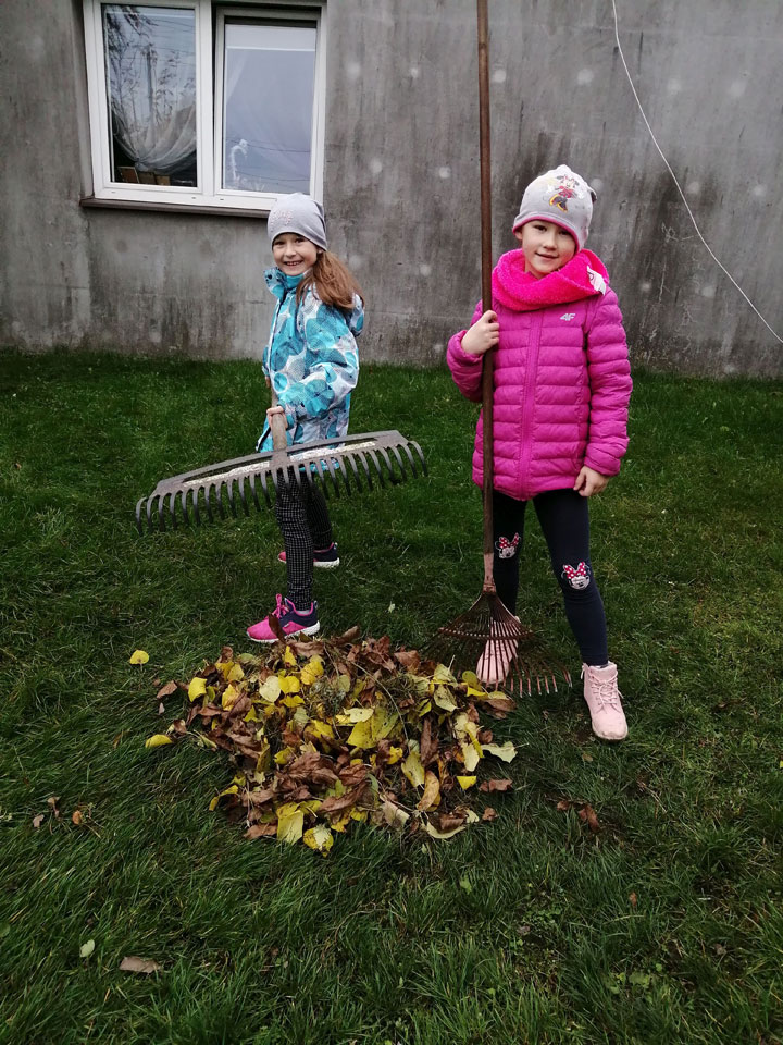 Klasa II A także włączyła się w akcję pomagającą jeżom przetrwać zimę. Dzieci dzielnie usypały kilkanaście kopczyków.