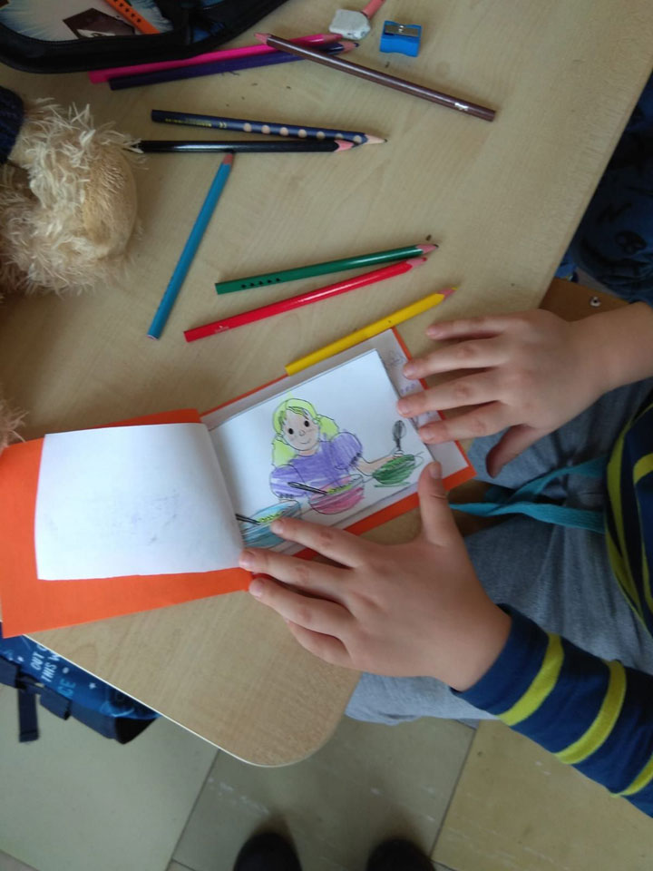 Po szaleństwach na podwórku trochę jeszcze popracowaliśmy nad wykonaniem własnej książeczki na podstawie dzisiejszej bajeczki...