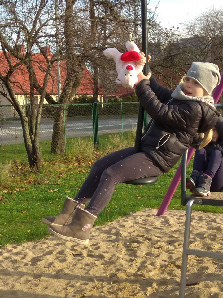 Potem misie się rozochociły i miały ochotę na wypróbowanie naszych podwórkowych atrakcji...