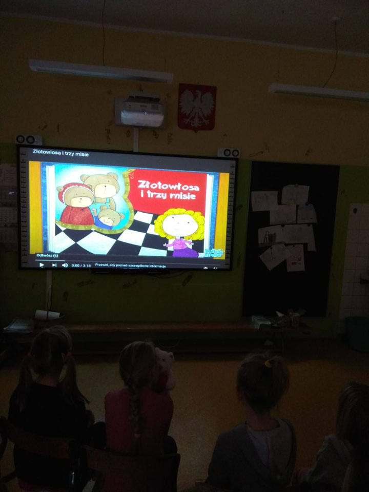 Po porannej gimnastyce z misiami dzieci obejrzały bajkę "Złotowłosa i trzy niedżwiadki".