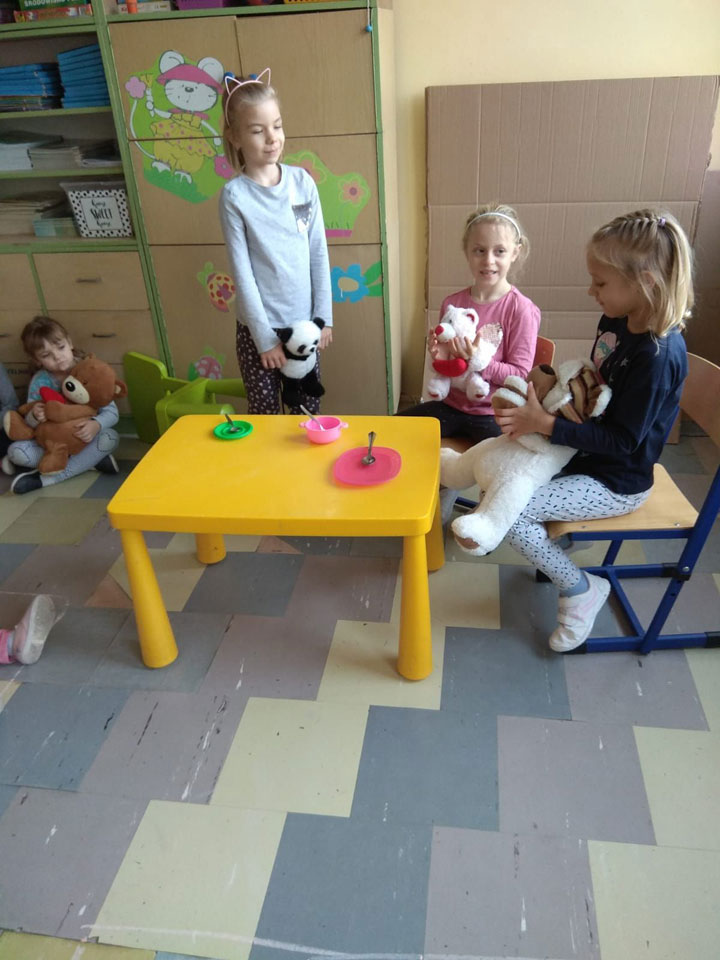 Potem w sali przez jakiś czas bawiliśmy się w teatr i dzieci odegrały dwa razy tę mądrą historyjkę.