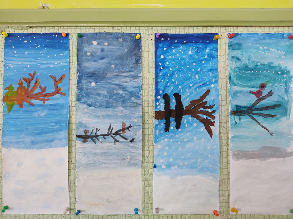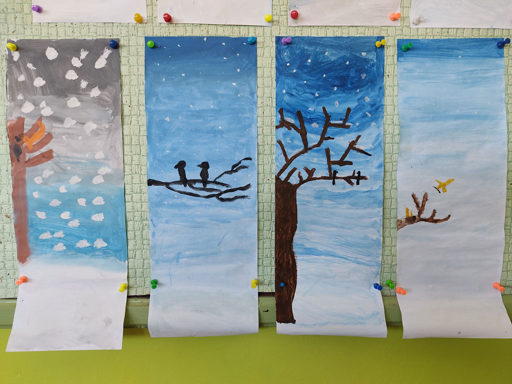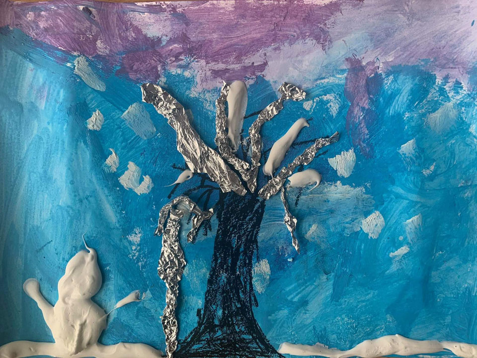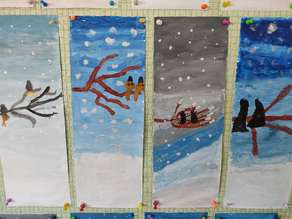 Ośnieżone drzewa wykonane przez małych artystów z klasy 3b ❄️⛄️❄️