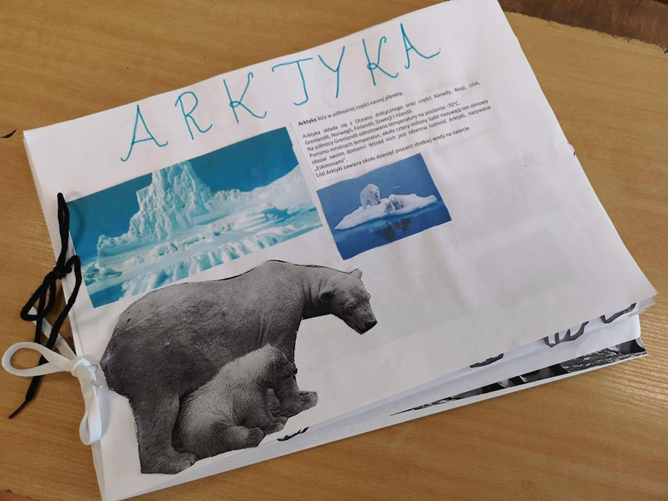 Album zawierający informację i fotografie o Arktyce i Antarktydzie wykonany przez klasę 2b.