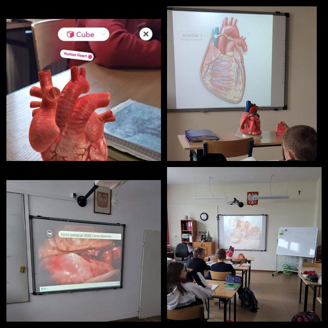 Akcja została poszerzona o współpracę z nauczycielem biologii. Pani E. Mejer najpierw przeprowadziła lekcje z uczniami klas IV i VII na temat układu krążenia (zdjęcia poniżej).