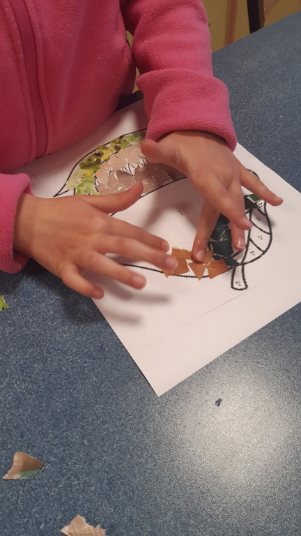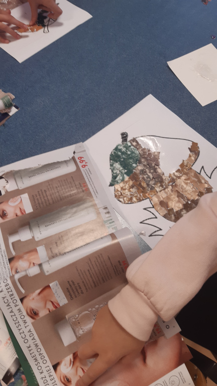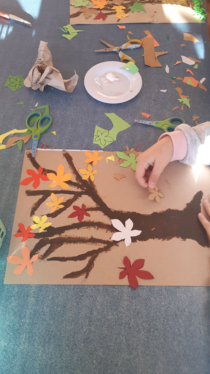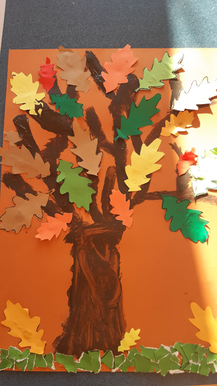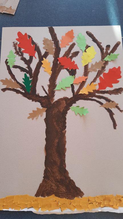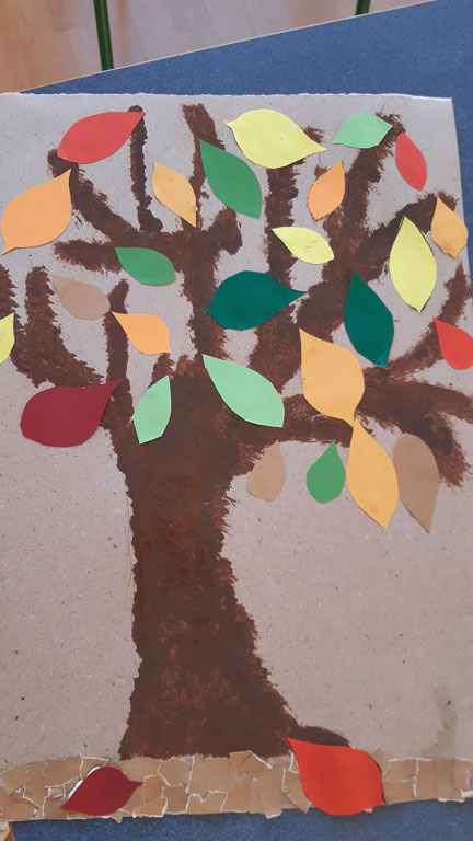 Jesienne drzewo. Malowanie farbami plakatowymi - odcisk palca.
